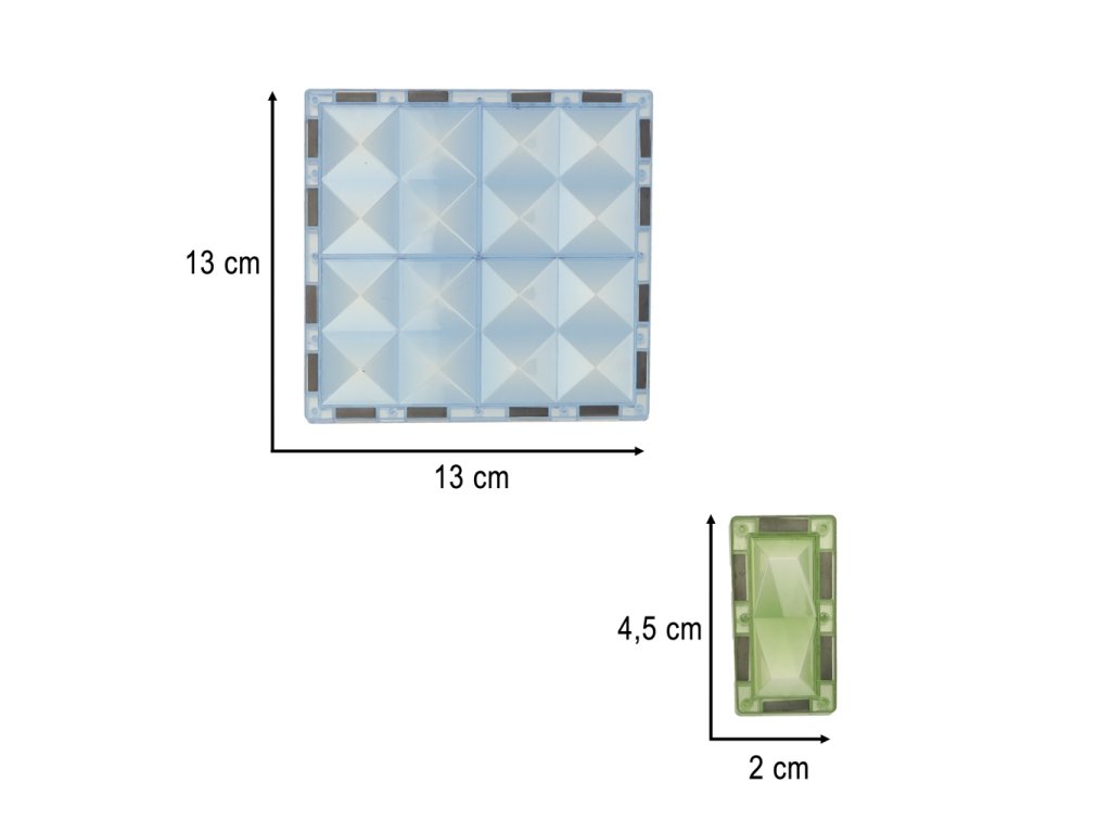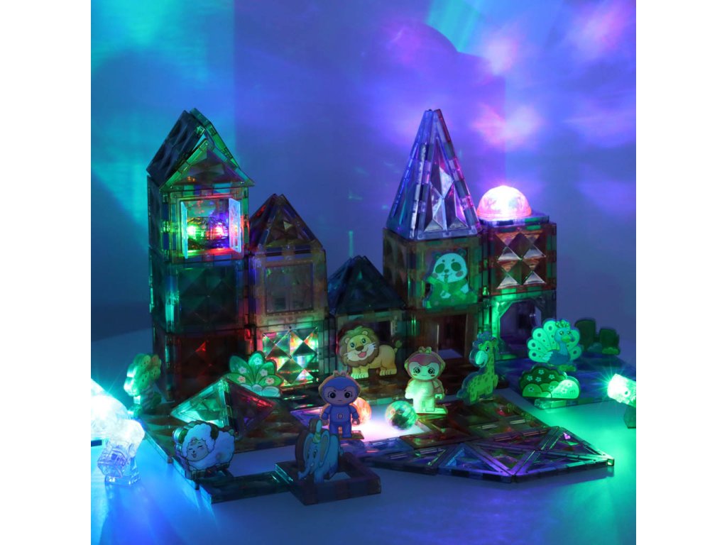 Kostky mají zabudované magnety, které usnadňují spojování a oddělování dílků bez použití síly. Některé kostky svítí, takže každá stavba je ještě působivější, zejména po setmění!
