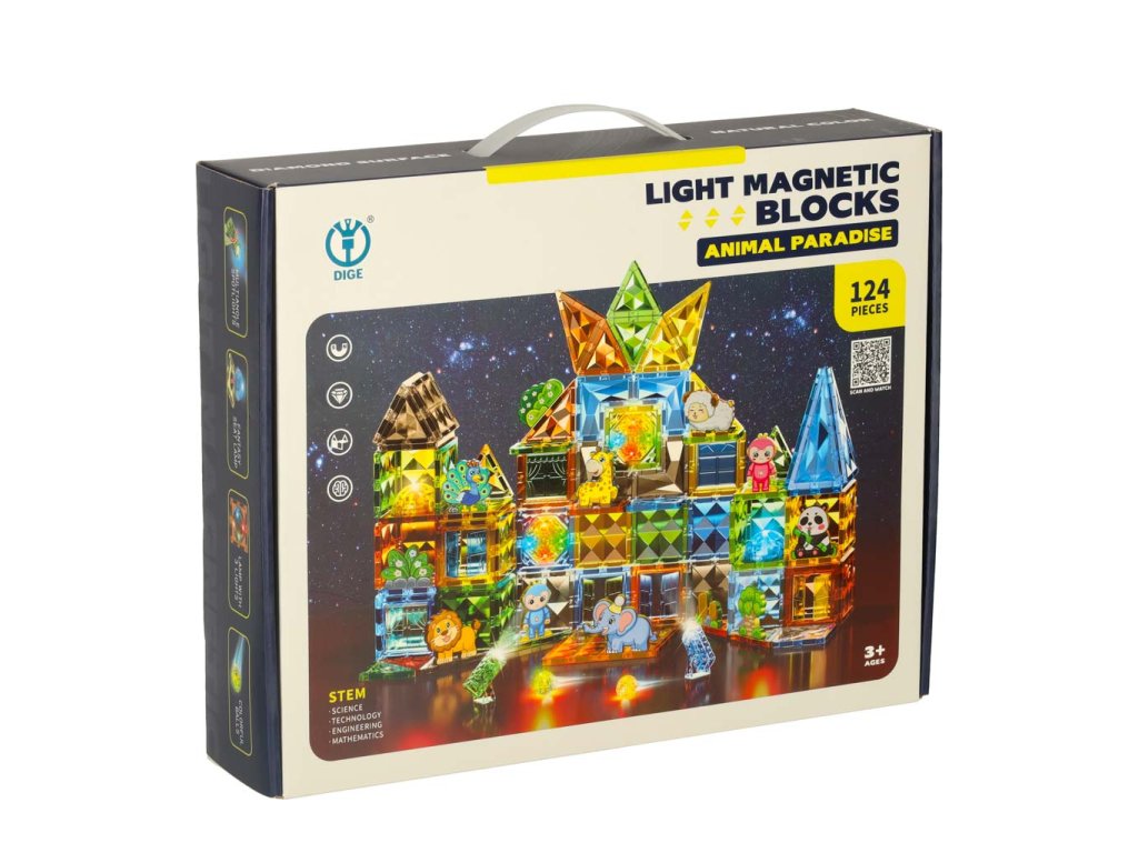 3D magnetické stavebnice osvětlený zvířecí park 124 el.