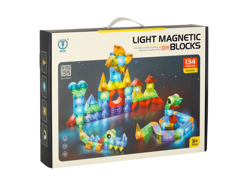 Kostky různých tvarů a barev dávají dítěti možnost vytvářet různé stavby - od jednoduchých věží až po složitější 3D obrazce. Díky zabudovaným magnetům je stavění z kostek snadné a zábavné. Díky svítícím prvkům vypadá každá stavba působivě, zejména ve tmě.