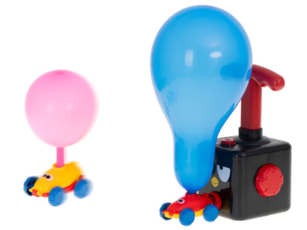 Na začátek umístěte na auto nenafouknutý balónek. Poté připojte auto k odpalovacímu zařízení a nafoukněte balónek. Jakmile je balónek naplněn vzduchem, stiskněte tlačítko na odpalovacím zařízení a sledujte, jakou rychlostí se pohybuje po koberci v místnosti.