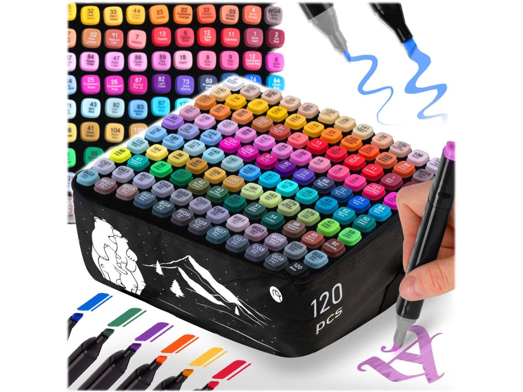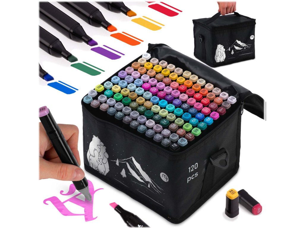 Alkoholové fixy s pouzdrem 120 ks.