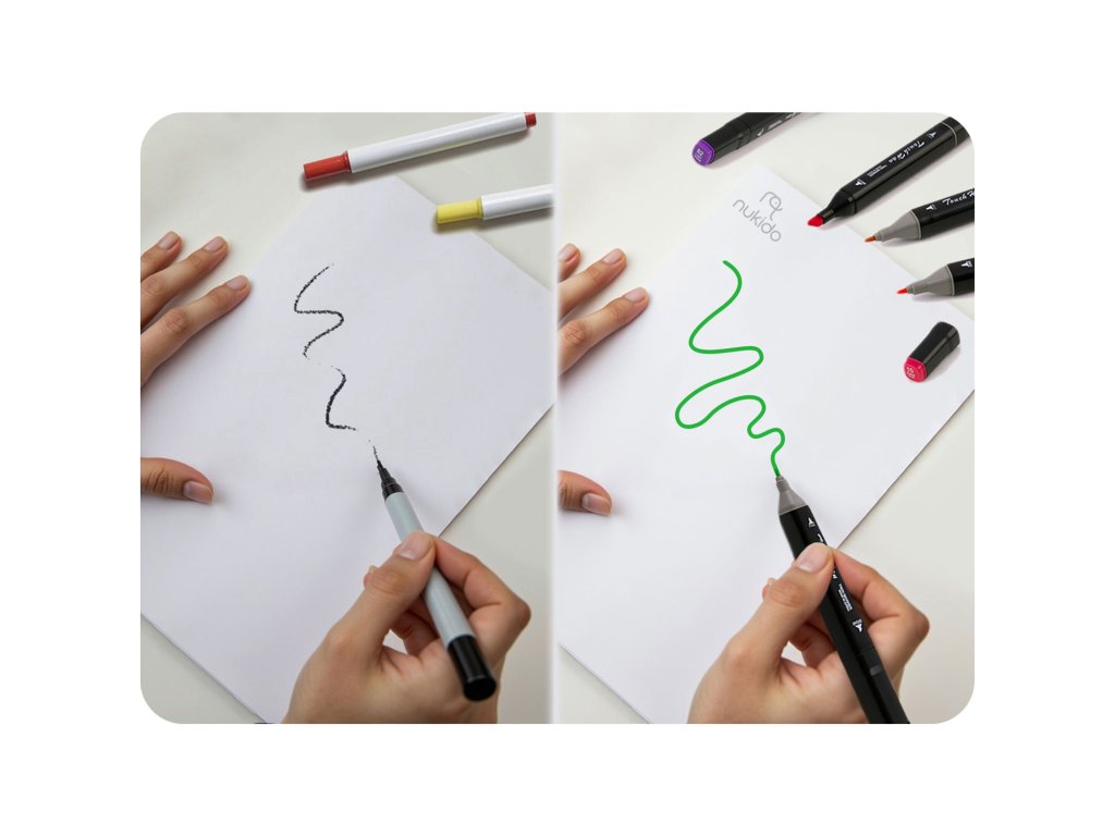 - Popisovače s dvojitým hrotem jsou ideální pro výuku kaligrafie a psaní.