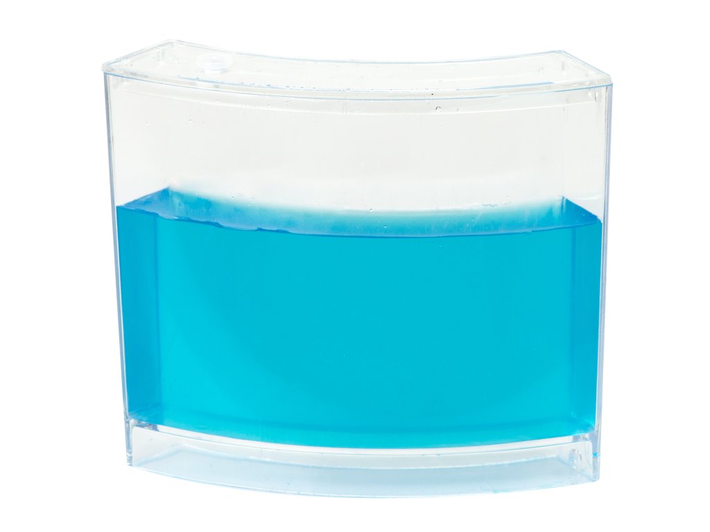 Plastové akvárium je naplněno netoxickým modrým gelem.