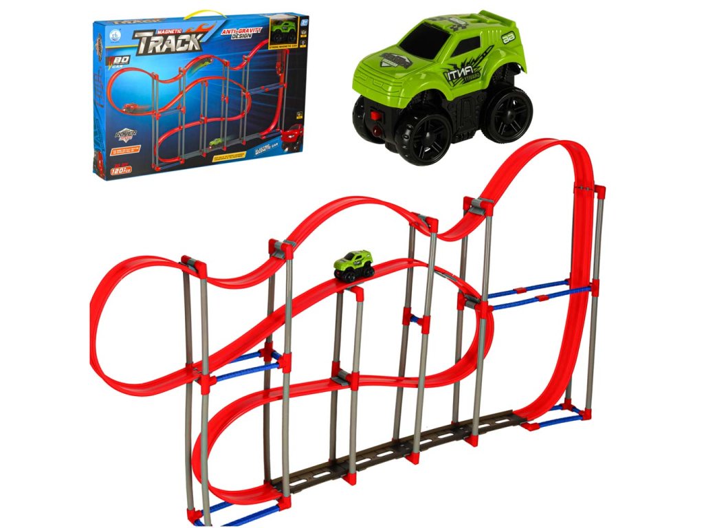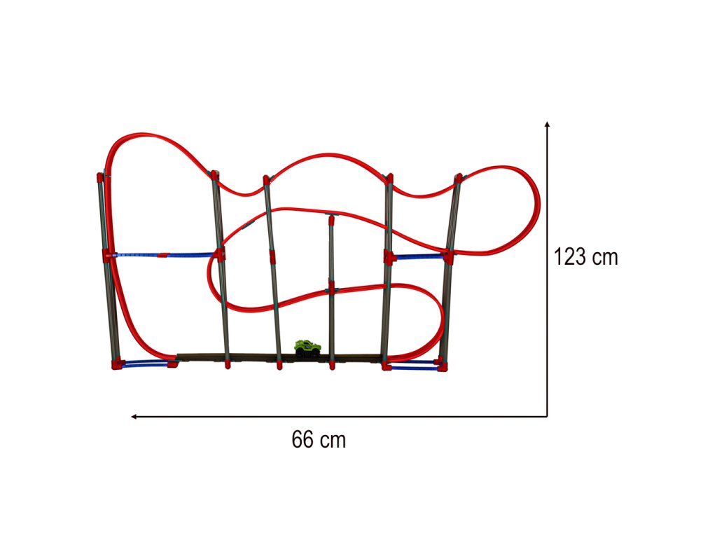 - Rozměry postavené dráhy: 123 cm x 8 cm x 66 cm