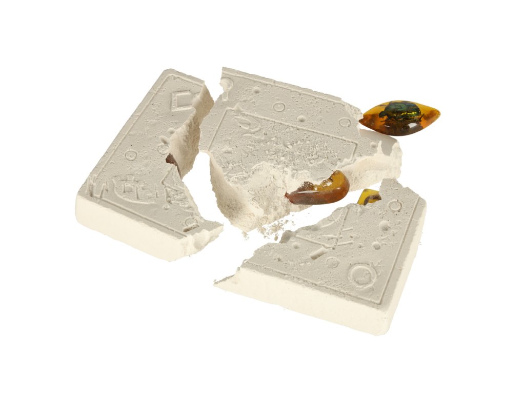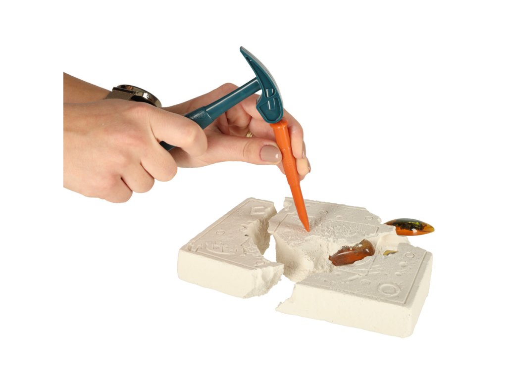 Hra spočívá v kopání šesti exemplářů hmyzu uložených v jantaru které jsou umístěny v sádrovém prvku. Dítě má k dispozici profesionální nástroje každého archeologa: kladivo a dláto. S nimi se dítě učí se přesným pohybům, čímž rozvíjí manuální dovednosti.