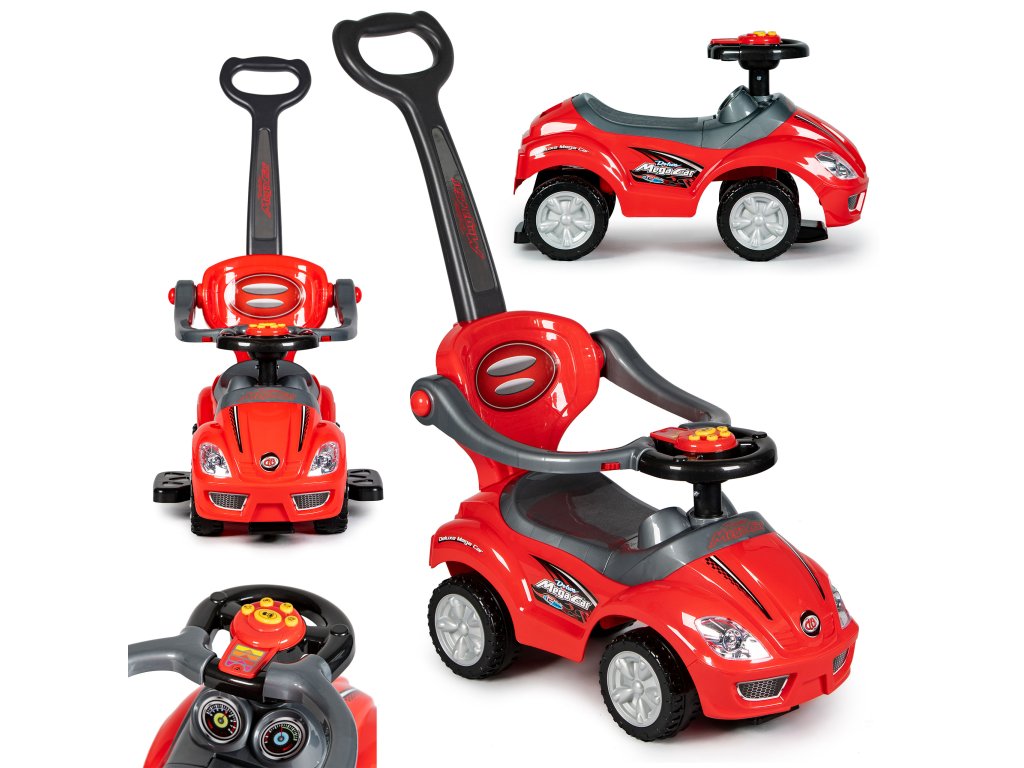 Autíčko 3v1 DELUXE s rukojetí a hudebním panelem - červené