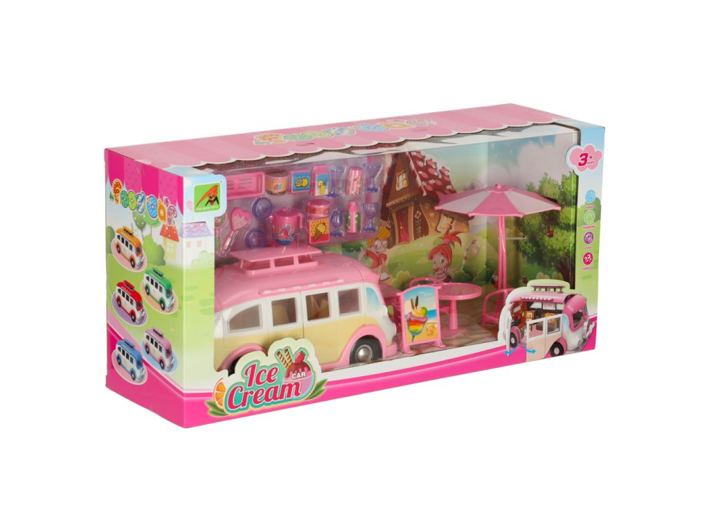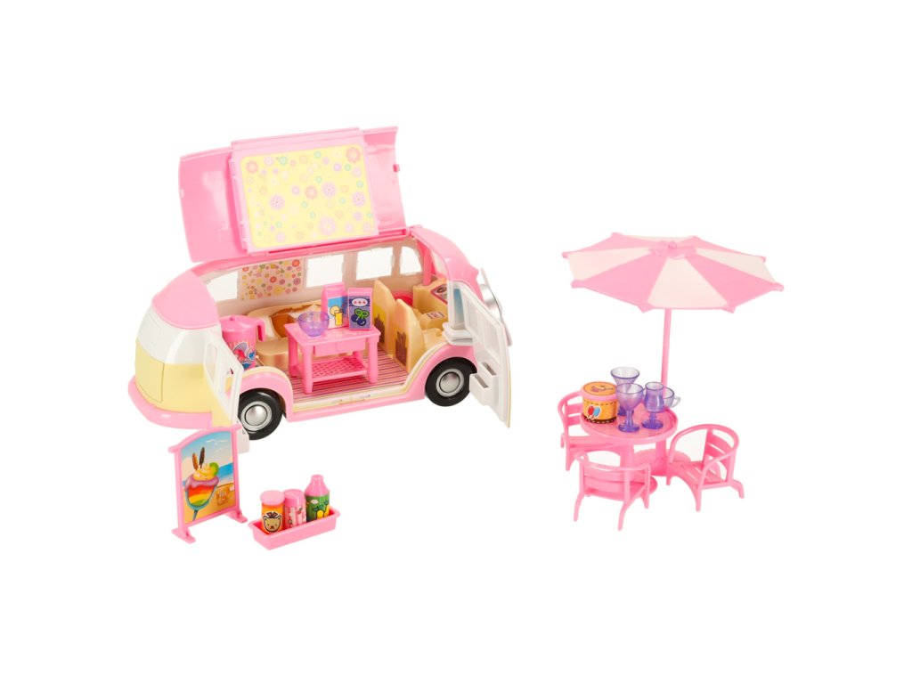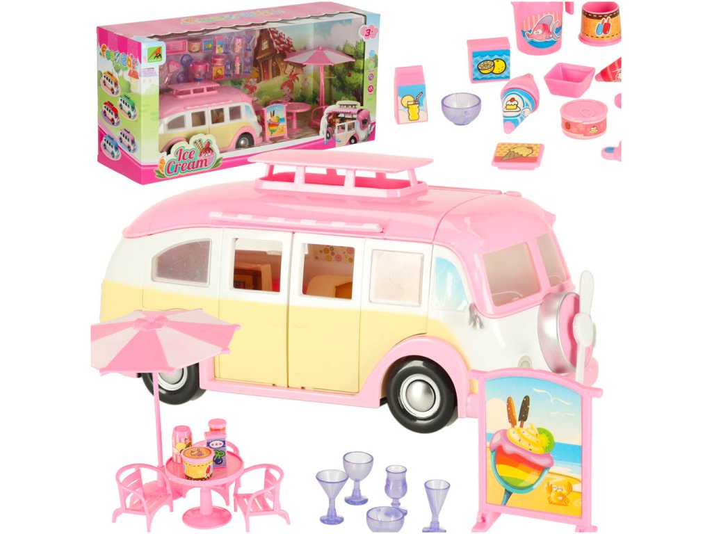 - Věk: 3+- Materiál: plast - Barva: růžová, bílá, žlutá, vícebarevná - Typ hračky: skládací karavan - zmrzlinárna- Počet dílů: - Pohyblivé části: ano- Napájení: žádné