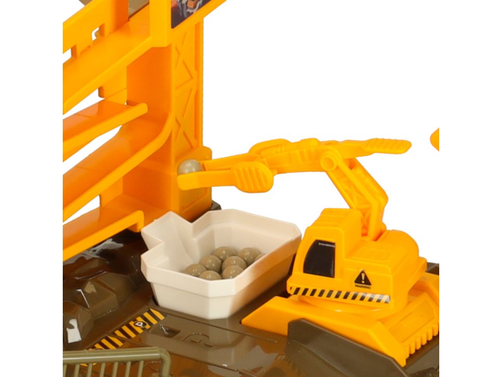 Sada obsahuje nejen autíčka, ale i další stavební prvky včetně jeřábu. Dítě se tak může plně vžít do role stavbyvedoucího, plánovat přepravu nákladu a kontrolovat postup prací.