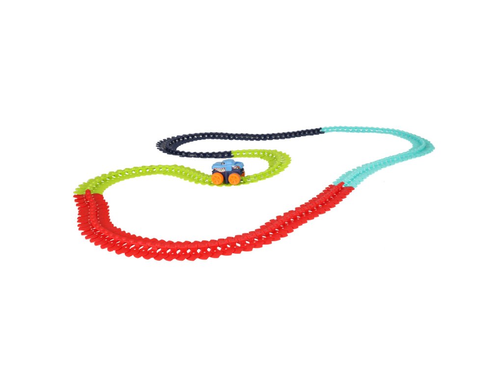 Sada se skládá z 192 kostek ve čtyřech barvách které jsou správně spojeny a tvoří pružný pás, po němž vůz jede obrovskou rychlostí. Nebojí se ostrých zatáček ani jízdy do kopce - je připraven na každou výzvu!