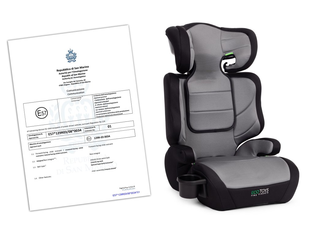 Autosedačka ECOTOYS splňuje nejnovější evropské bezpečnostní normy v souladu s nařízením i-Size (ECE R129/03). Tato norma byla zavedena s cílem zajistit maximální bezpečnost dětí při cestování autem, ukládá výrobcům autosedaček přísné požadavky. Náš model autosedačky prošel všemi potřebnými testy, včetně crash testů, certifikace i-Size potvrzení dodržování všech bezpečnostních požadavků. To vám dává jistotu, že dítě bylo během cesty dostatečně chráněno.