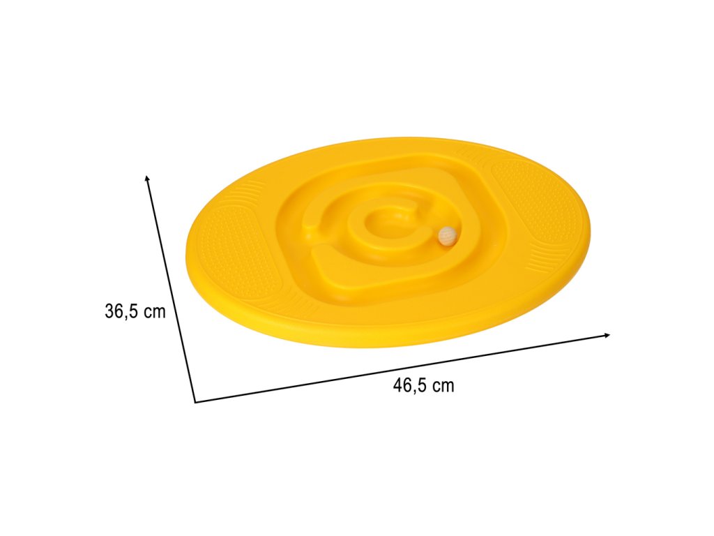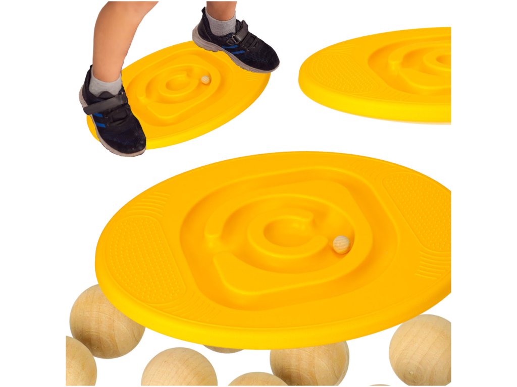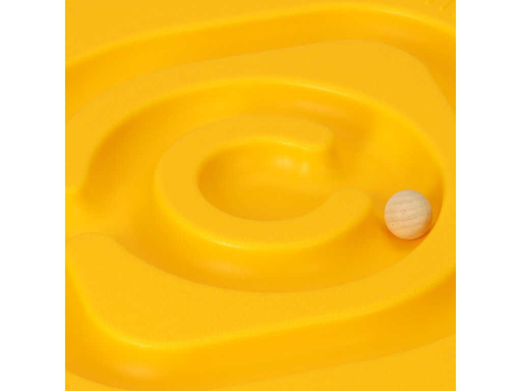 Balanční kladina je vyrobena z odolného plastu ve žluté barvě a má maximální nosnost až 90 kg, což zaručuje dlouhotrvající zábavu i při těch nejintenzivnějších aktivitách. Labyrint umístěný uprostřed balanční hrazdy je atraktivním doplňkem, který dítě ještě více zaujme. Dřevěné kuličky je třeba nasměrovat do středu labyrintu vyvažováním desky. Další nerovnosti na povrchu stimulují hmat a zajišťují bezpečnost tím, že zabraňují uklouznutí.