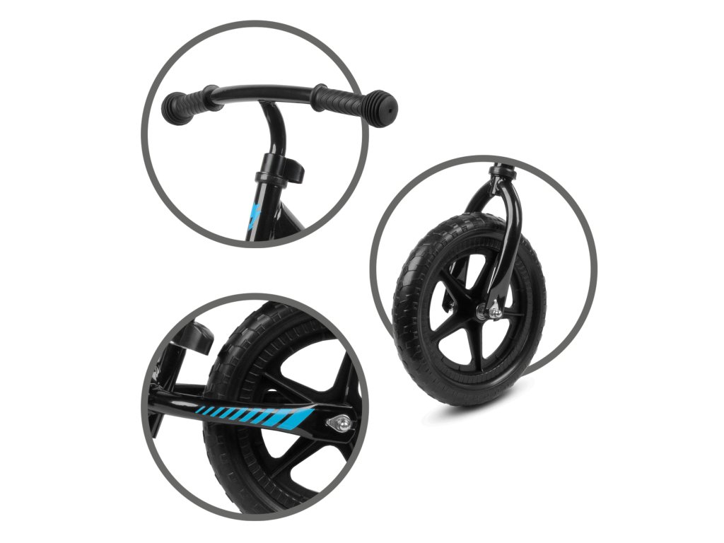 Balanční kolo má plně otočná řídítka s nastavitelnou výškou. V případě pádu se řídítka pod vahou dítěte sklopí do roviny, čímž se sníží riziko zranění.