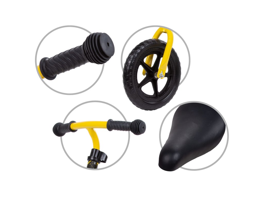 Materiály : ocelový rám, kola z pěny EVA, plastové prvky