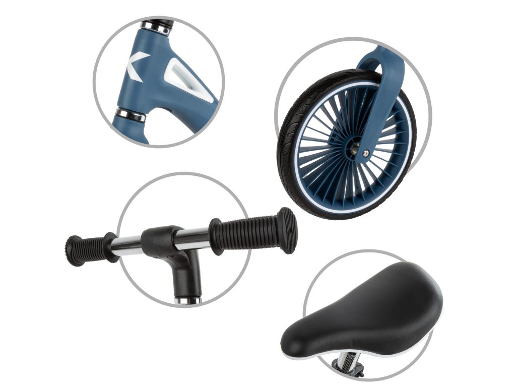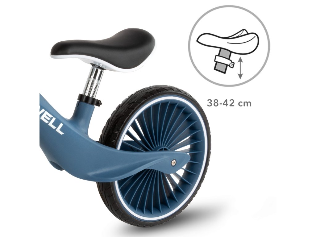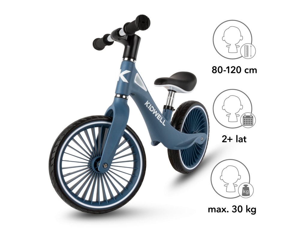 H BALANČNÍ KOLO NIX Seznamte se s modelem NIX - balančním kolem, které kombinuje moderní design, poutavé ráfky a lehký, odolný nylonový rám. Díky propracovanému designu si dítě užije plynulou jízdu a rodič může kolo snadno přenášet, když se malý cyklista rozhodne odpočívat. Je to ideální první dopravní prostředek, který dítěti pomůže rozvíjet rovnováhu, koordinaci a hrubou motoriku a připraví ho na jízdu na klasickém kole. RÁM Je vyroben z extrémně odolného nylonu, který se v průmyslu používá k výrobě komponentů odolných proti zatížení, a poskytuje výjimečnou odolnost a pohodlí při používání. Váží pouhých 3,05 kg, takže se batole bez námahy naučí jezdit a rodič může kolo snadno přenést, až dobrodružství na dvou kolech skončí. Celá řada NIX zaujme bohatou paletou barev, která nejen lahodí oku, ale také podtrhuje individuální styl mladého cyklisty. KOLA Polyuretanové pneumatiky kombinují bezkonkurenční trvanlivost s odolností proti poškození a jejich konstrukce zajišťuje vynikající stabilitu, takže dítě snáze udrží rovnováhu i při těch nejdynamičtějších dobrodružstvích. RIM První kolo na trhu s jedinečným designem ráfku inspirovaným turbínou, který jistě upoutá pozornost a odliší se od ostatních. VOLANT Balanční kolo je vybaveno plně otočnými řídítky, která se v případě pádu dítěte sklopí na plocho, čímž se minimalizuje riziko zranění a zajišťuje dodatečná bezpečnost při hře. HANDS Měkké, pogumované a protiskluzové rukojeti zajišťují pevné uchopení a pohodlné ovládání, takže dítě má kolo při každé jízdě plně pod kontrolou. SEDLO Ergonomické sedlo s měkkým polstrováním zajišťuje vysoký jízdní komfort a díky výškovému nastavení roste Kidwell NIX s vaším dítětem a poskytuje mu několik let vzrušující zábavy. BEZPEČNOST Balanční kolo Kidwell Nix splňuje bezpečnostní normy. Výrobek je certifikován podle směrnice o hračkách a norem EN 71-1,2,3. Certifikáty jsou větší zárukou bezpečného hraní. SPECIFIKACE:
