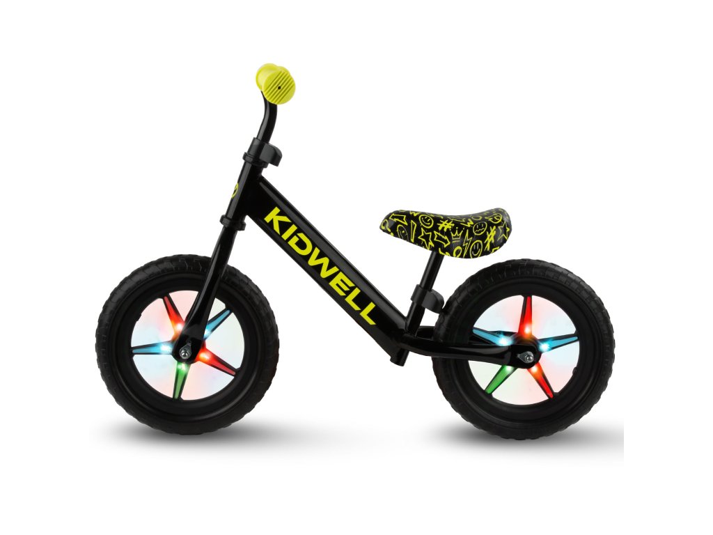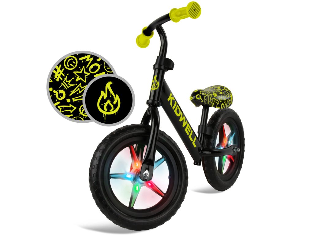 Nosiče s LED světly jsou nejen atraktivním doplňkem, ale také řešením zvyšujícím bezpečnost - dítě je lépe viditelné i za zhoršených světelných podmínek. Kola svítí za jízdy, aniž by bylo nutné je nabíjet nebo používat baterie. Ráfky s LED diodami jsou pevné a odolné proti poškození.