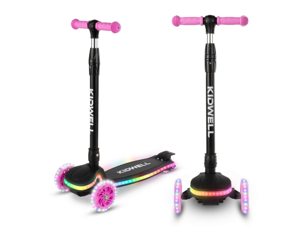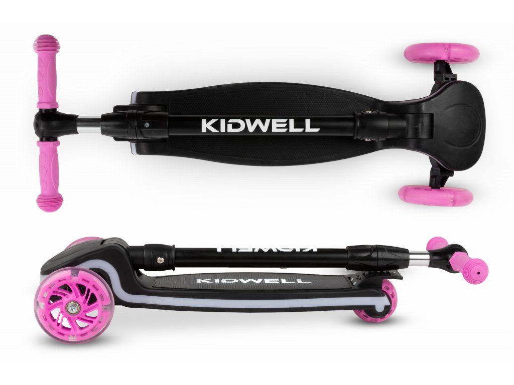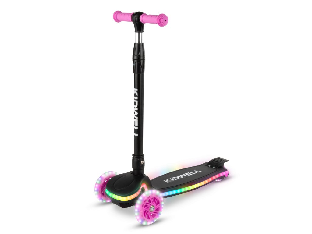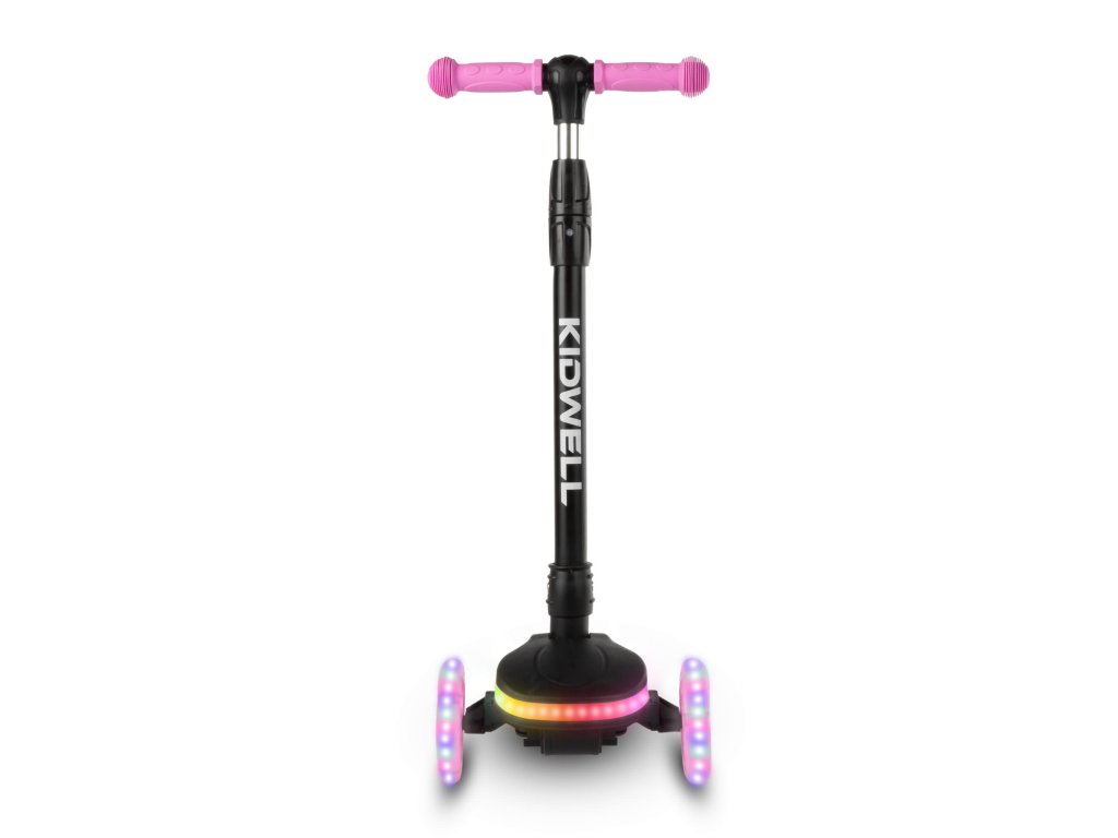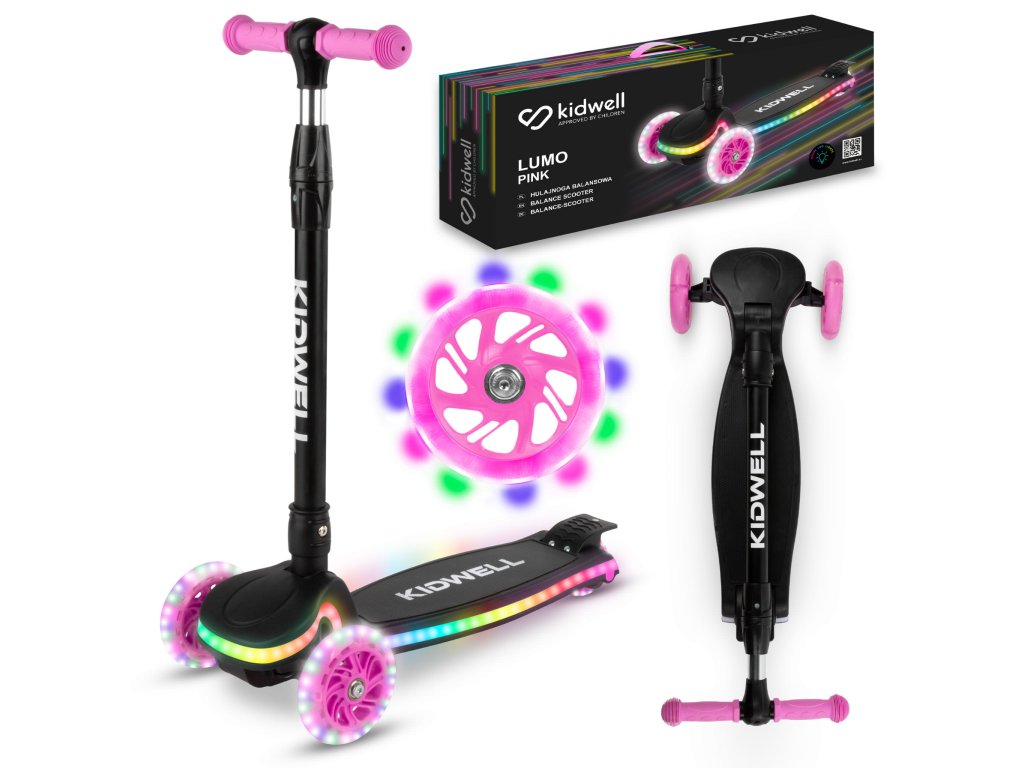 Koloběžka Lumo je vybavena nejen;osvětlená kola , ale také osvětlená plošina! začněte své barevné dobrodružství s Kidwell Lumo!