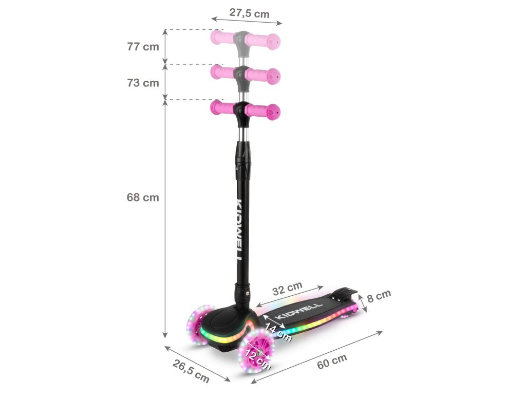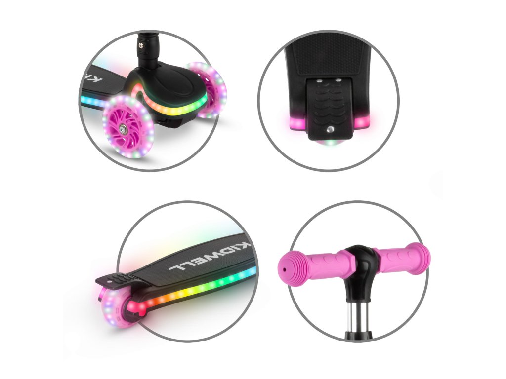 široký rozchod předních kol usnadňuje udržování rovnováhytichá a odolná kola poskytují velmi dobrou přilnavost k zemivestavěné LED diody které se rozsvítí během jízdy
