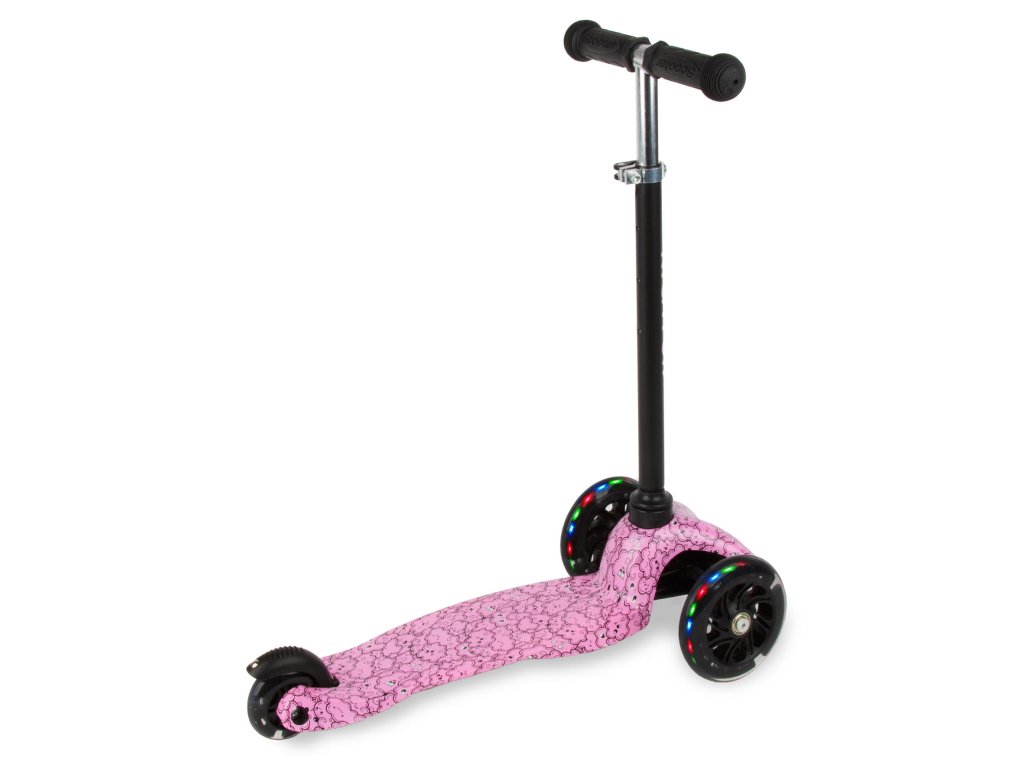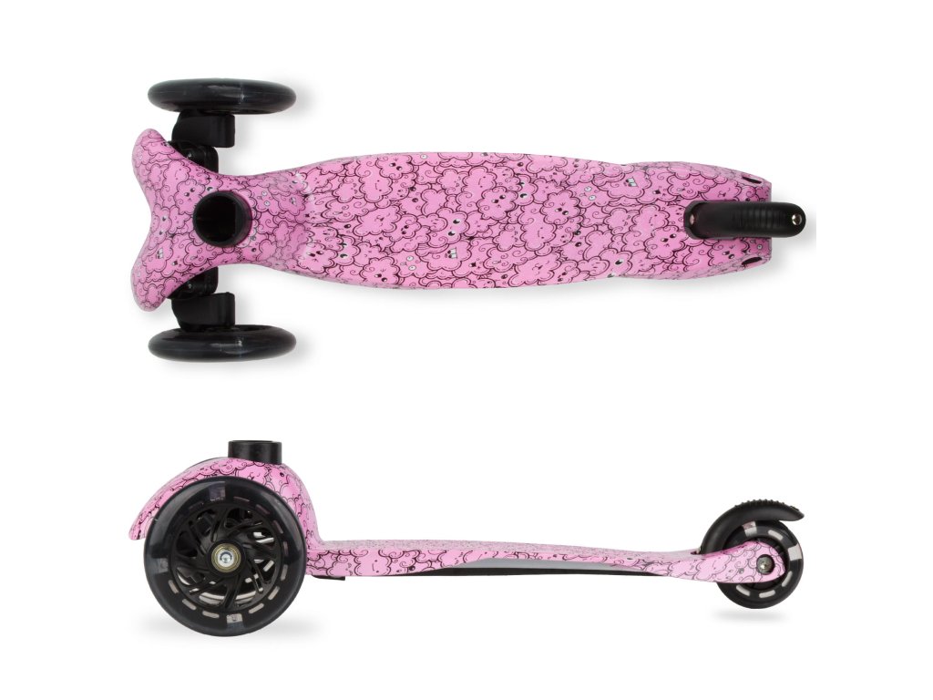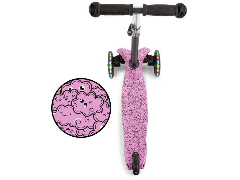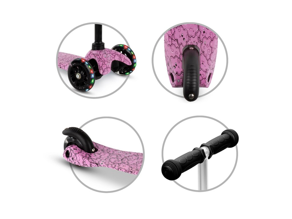 Materiály : hliníková řídítka, plastová deska, polyuretanová kola s LED diodami