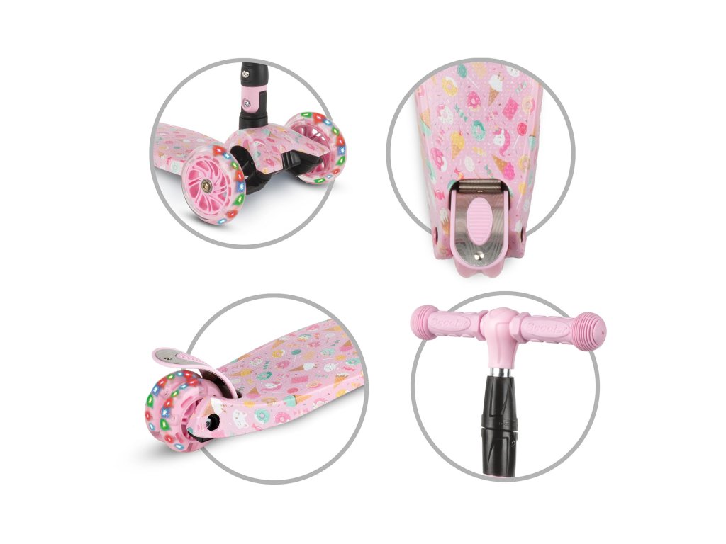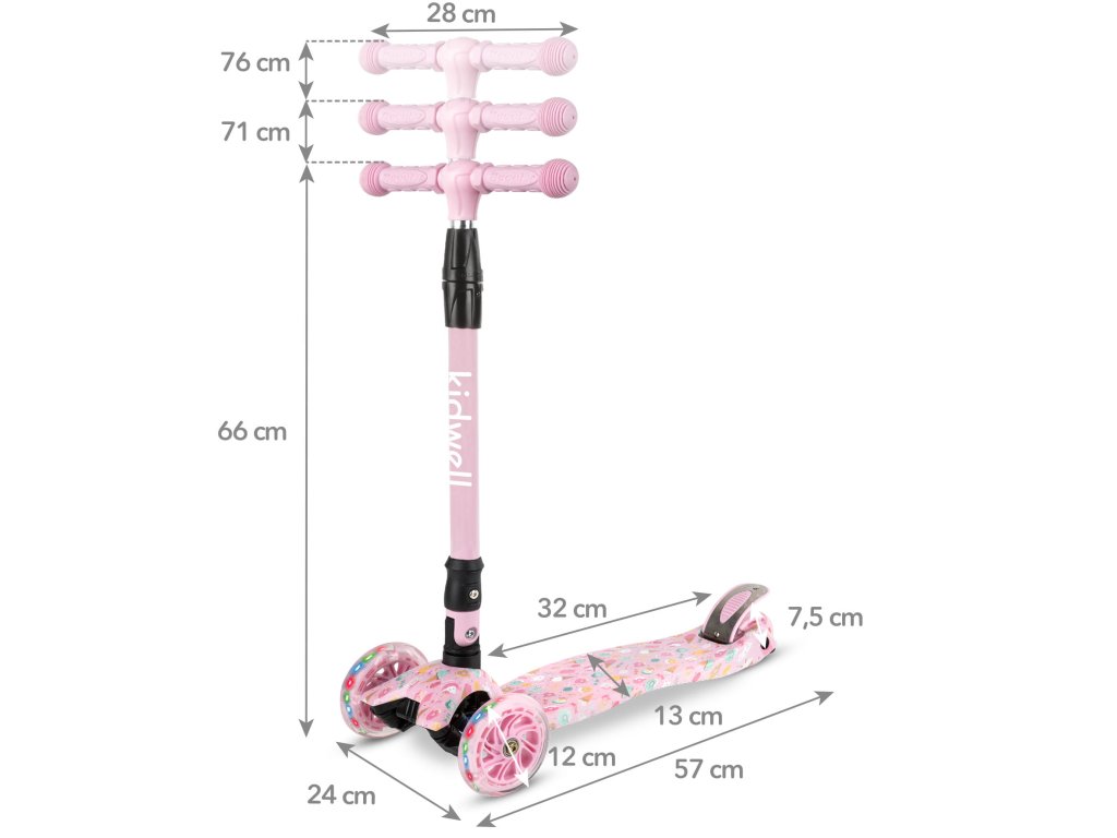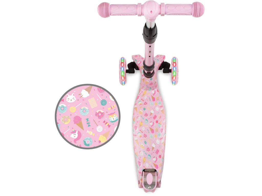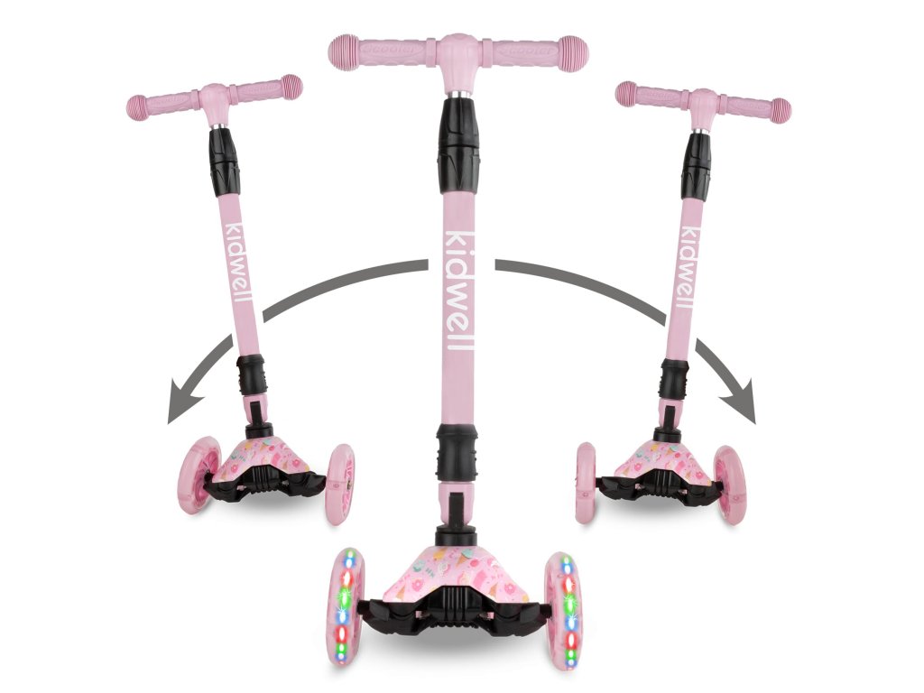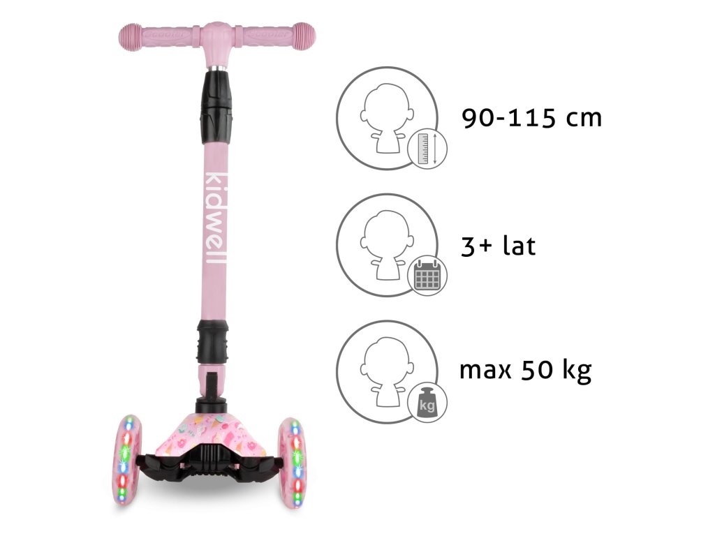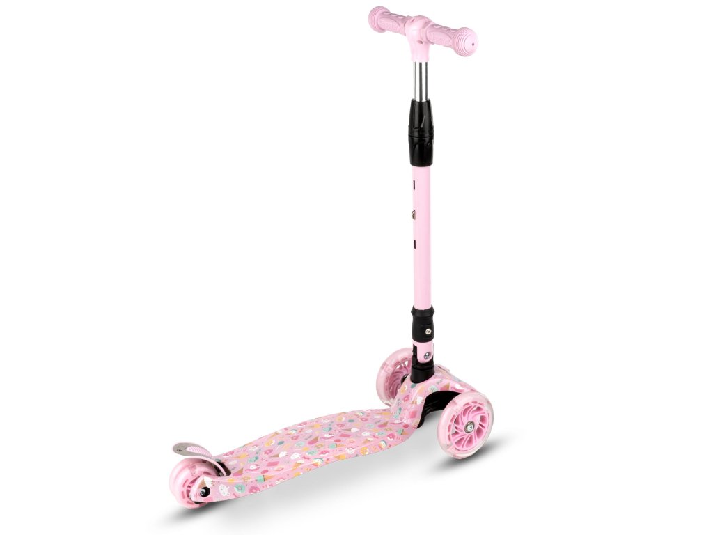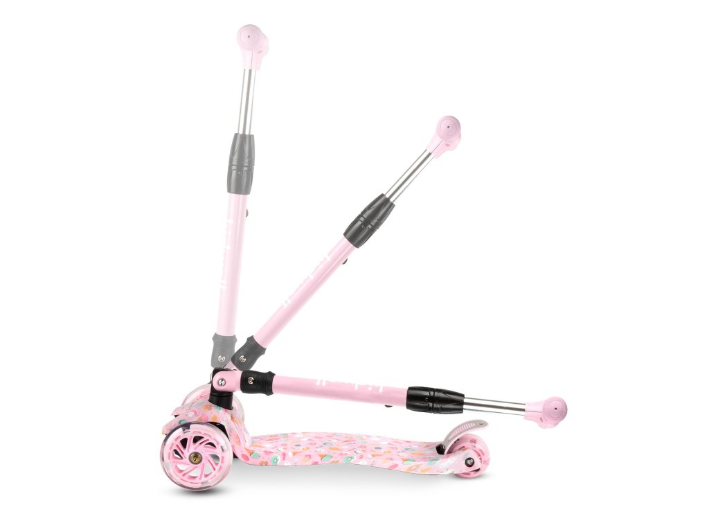 Trojkolesová kolobežka VENTO je dokonale vyvážená, stabilná a určite sa stane kamarátom vášho dieťaťa. Osvetlené LED kolieska a zaujímavý dizajn potešia každého malého používateľa.