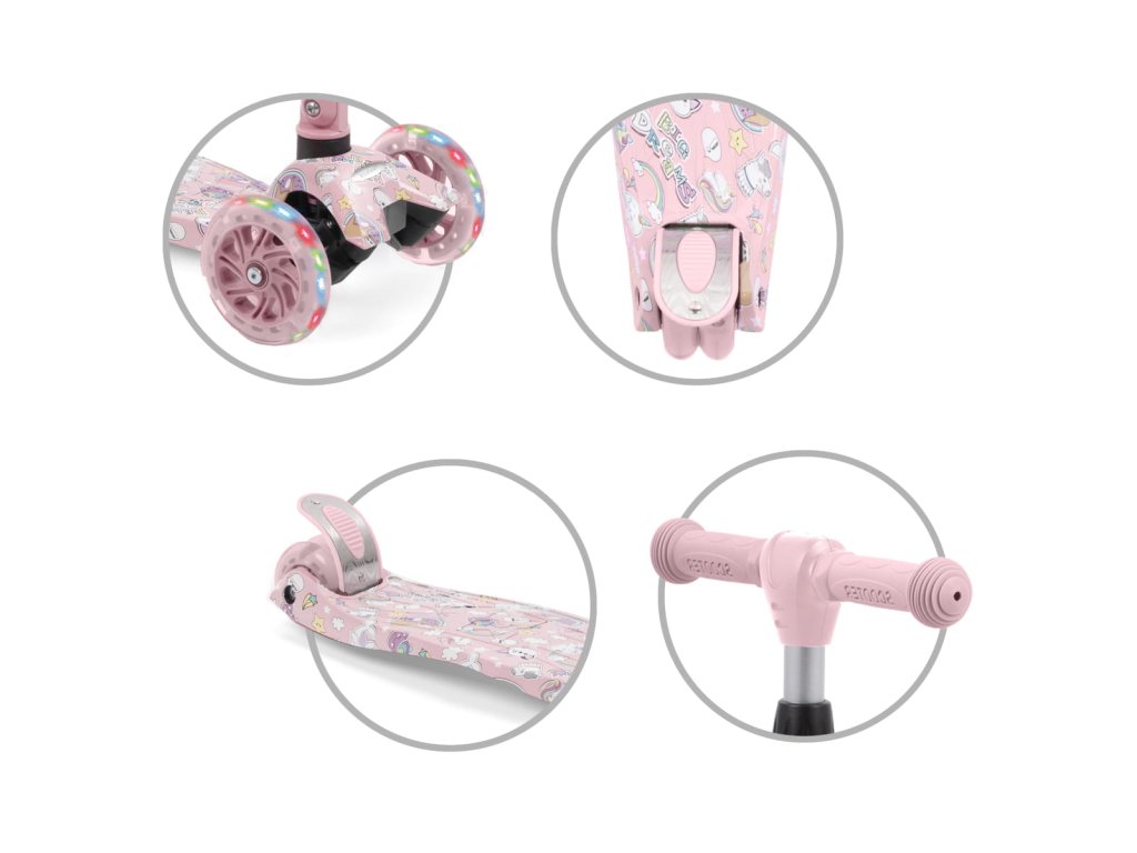 Tříkolový balanční skútr VENTONavrženo s ohledem na děti a s důrazem na každý detail. Pohyb na něm je plynulý a bezpečný a učení jízdy je snadné a příjemné. Tříkolová koloběžka VENTO je dokonale vyvážená, stabilní a určitě se stane společníkem vašeho dítěte. Podsvícená kola LED a zajímavý design potěší každého malého uživatele.