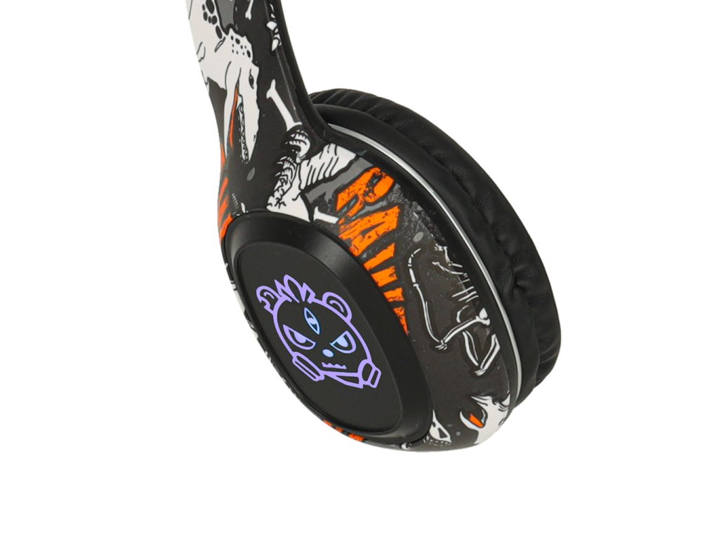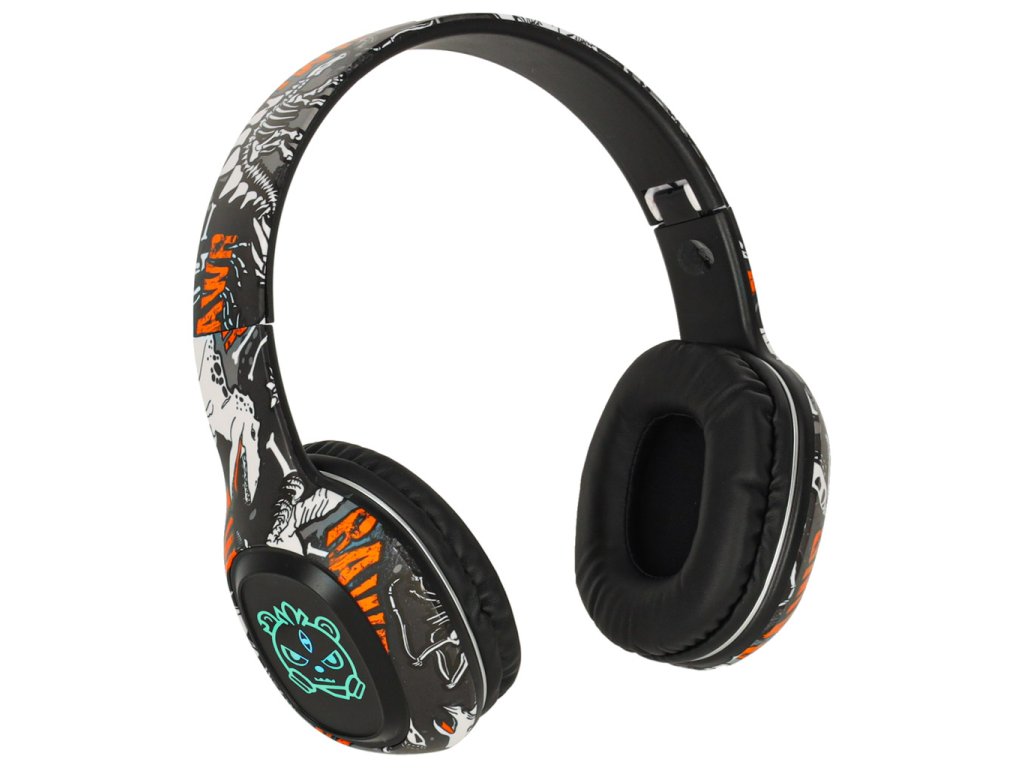Bezdrátová sluchátka bluetooth s osvětlením se vyznačují originálním designem. Barevný kryt s multimediálními prvky zachovanými v moderní estetice přitahuje pozornost a vzbuzuje zájem dětí i dospělých. Měniče o průměru 50 mm pozitivně přispívají ke kvalitě slyšitelného zvuku. Vestavěná tlačítka umožňují pohodlné ovládání hlasitosti nebo změnu skladby bez přímé interakce s externím přehrávačem.
