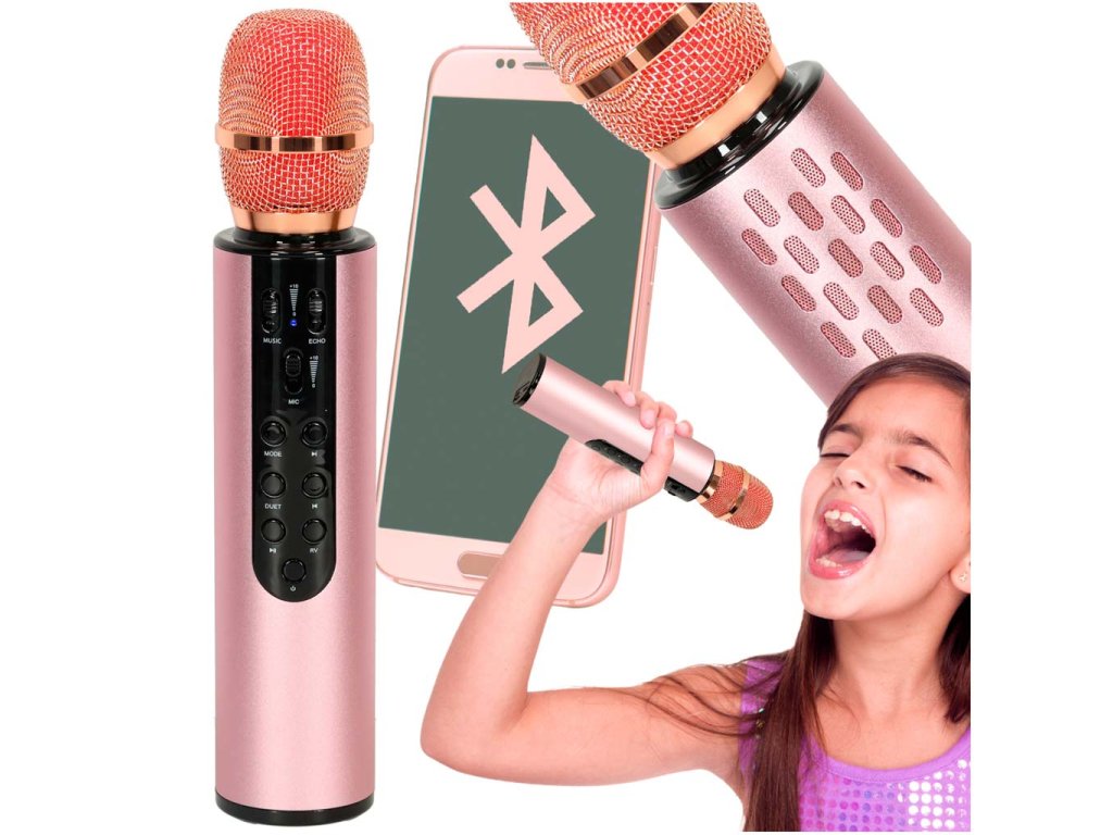 Bezdrátový mikrofon pro karaoke Bluetooth růžový
