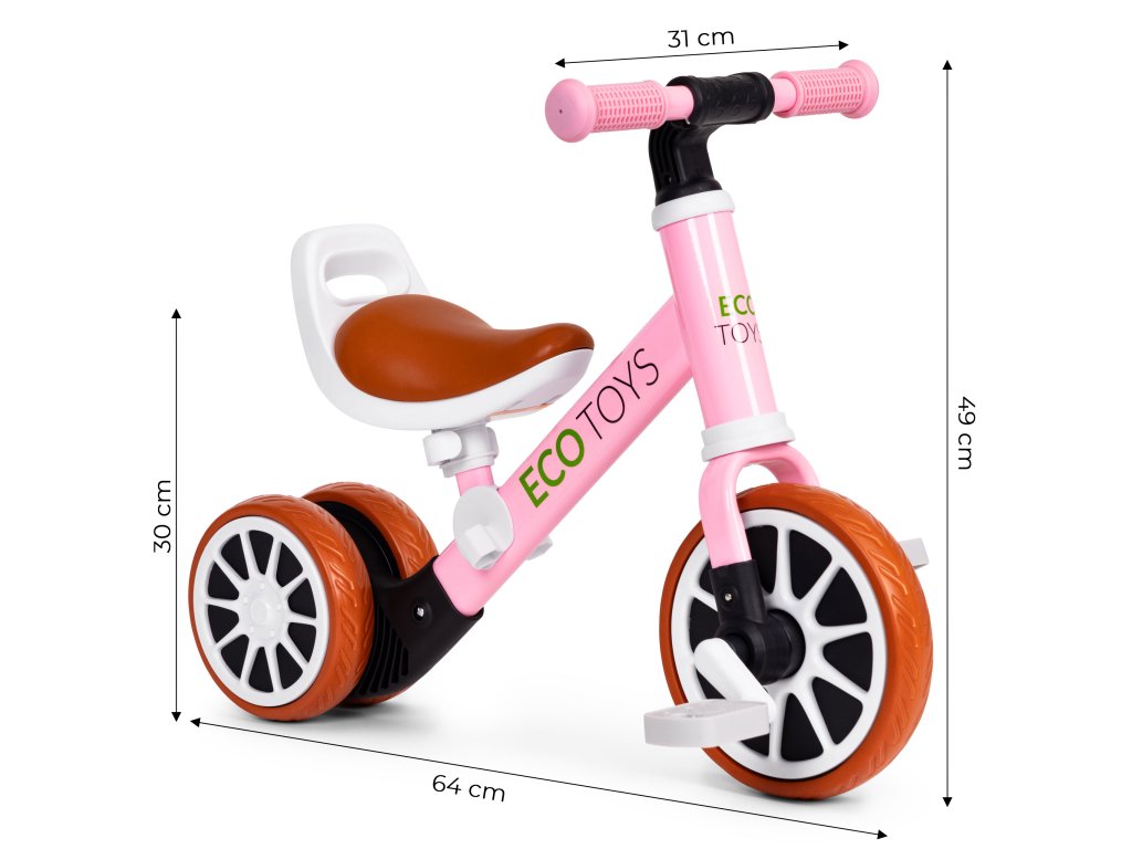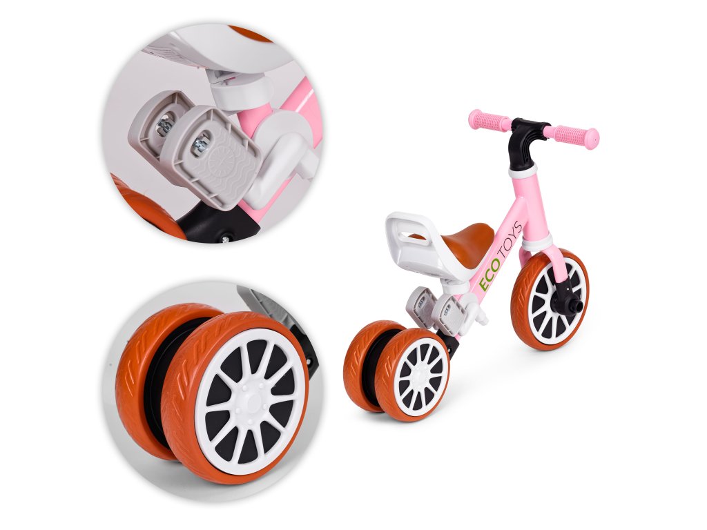 Běžecká tříkolka s pedály 2v1 růžová ECOTOYS