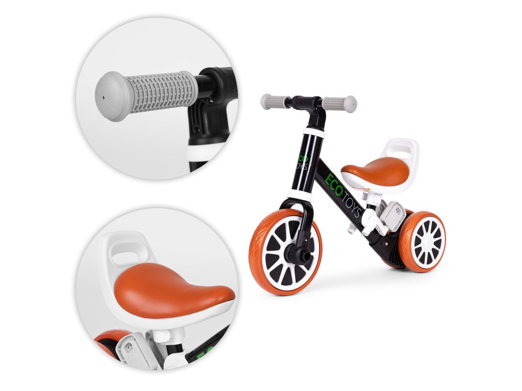 ECOTOYS 2v1: Tříkolka pro děti od 2 let. Funkce běžícího a standardního kola. Robustní ocelová konstrukce, odolná kola a pohodlné sedlo s rukojetí. Inovativní design a značkový výrobek zaručují bezpečnou a zábavnou jízdu.