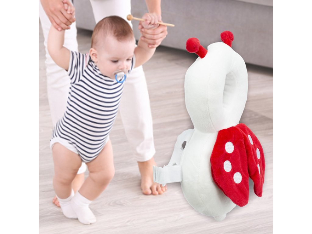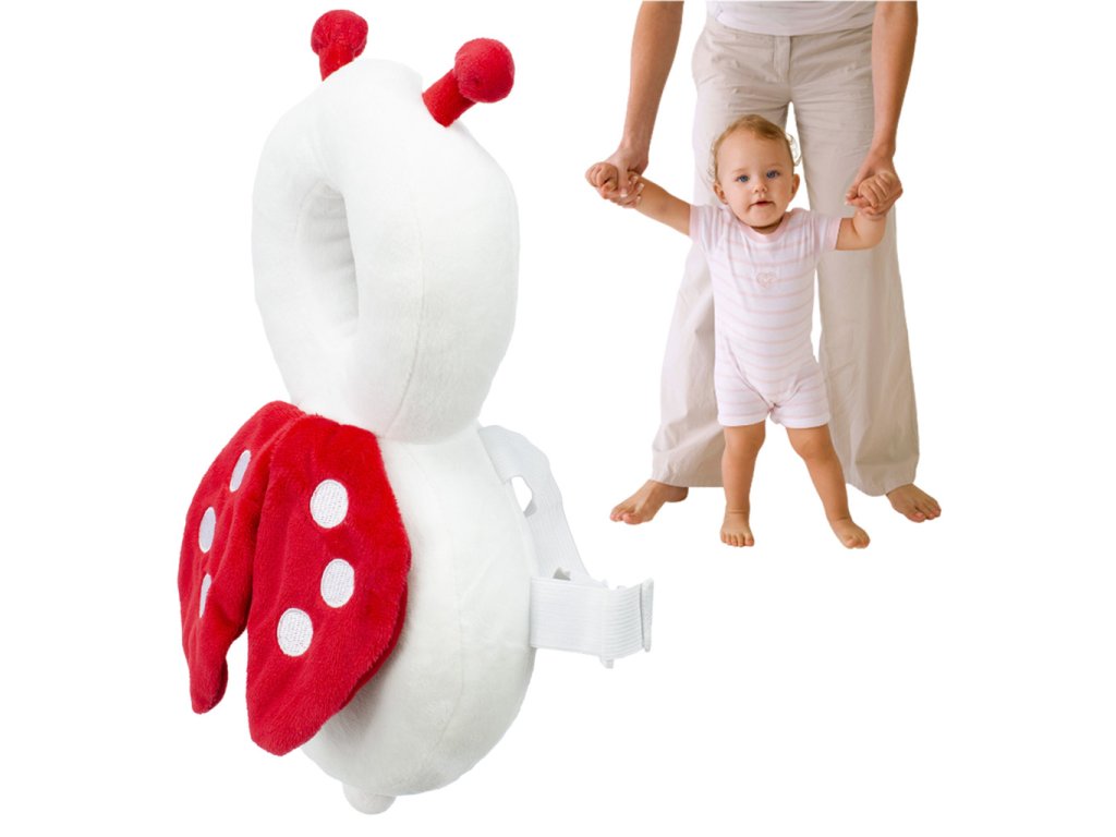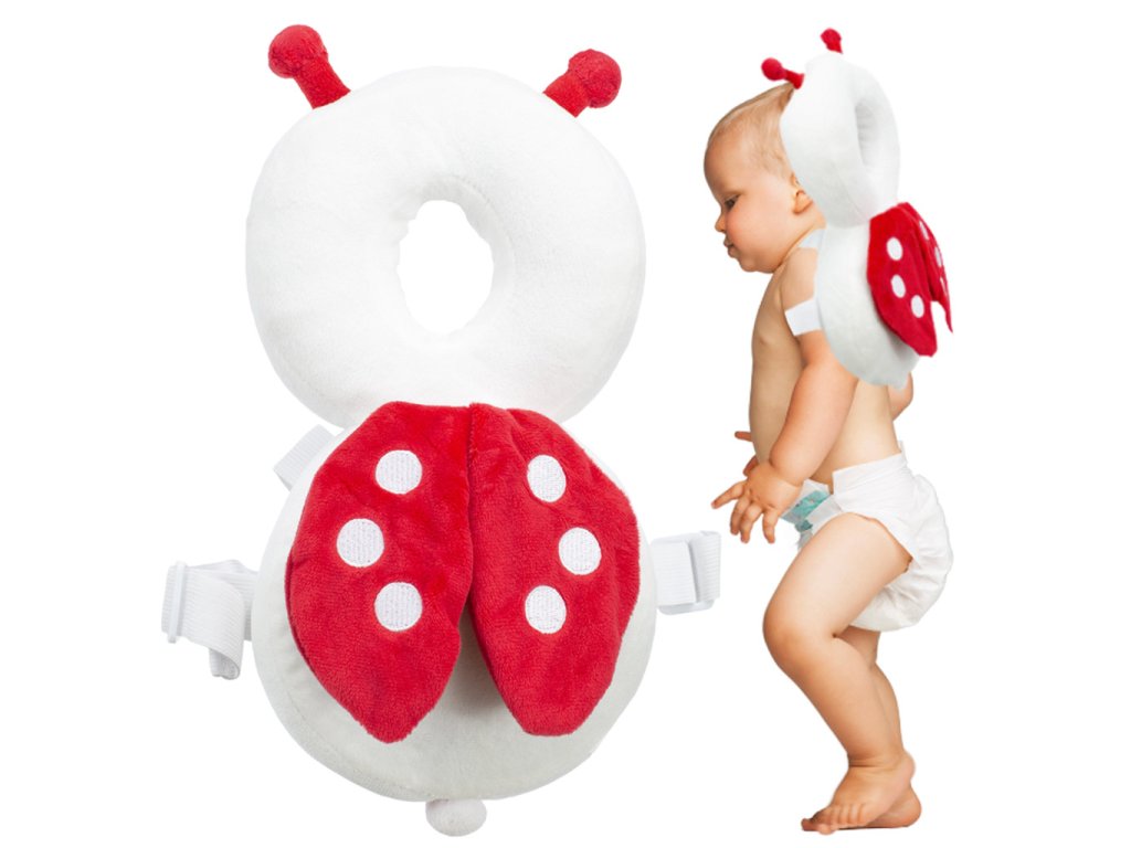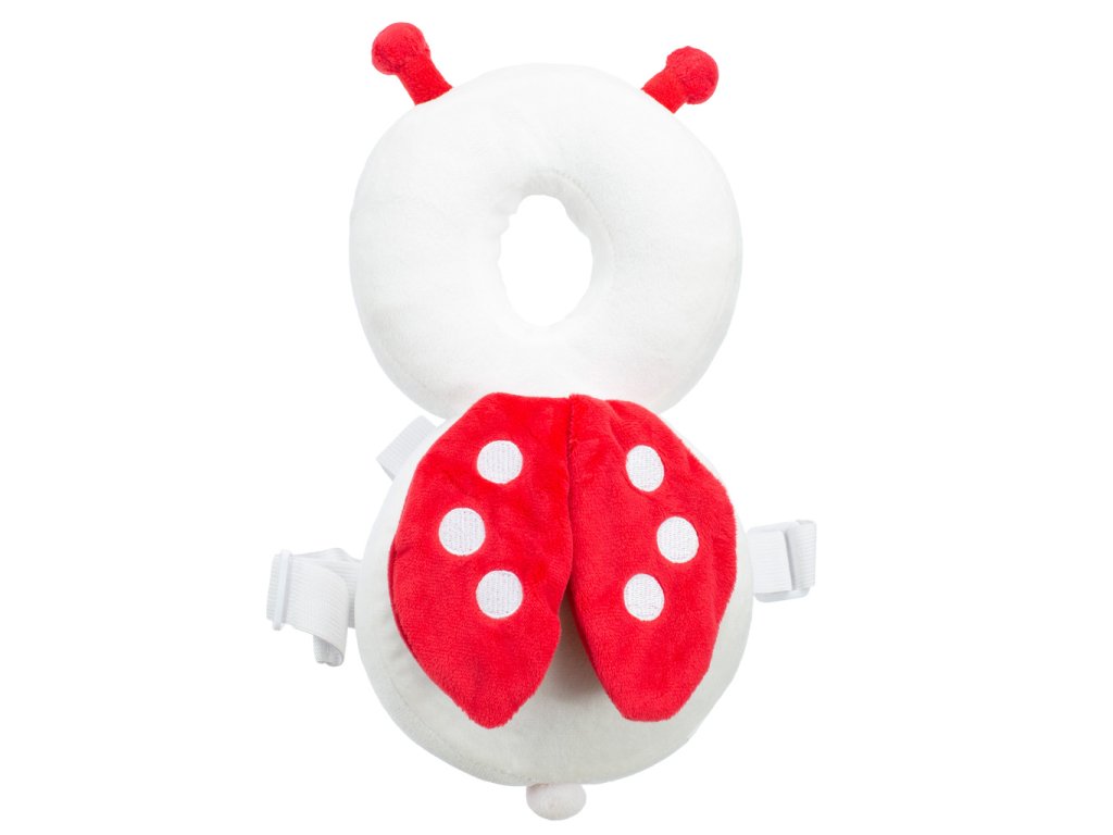 Chraňte své dítě při učení chůze s plyšovým polštářem Biedronka. Díky nastavitelným popruhům a měkkému materiálu je pohodlný a bezpečný. Užitečný také jako hračka. Rozměry: 25 cm x 15 cm.