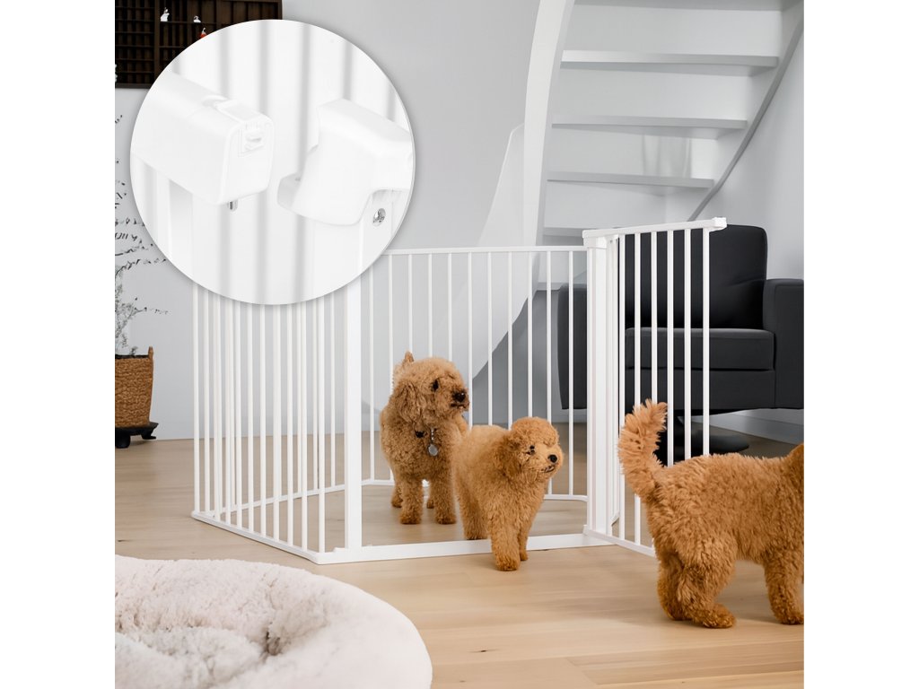 Naše bezpečnostní zábradlí je řešením nejen pro rodiče malých dětí, ale také pro majitele čtyřnožci . Pokud vlastníte psa, který potřebuje vyhrazený prostor doma bude tento produkt fungovat perfektně. Díky možnosti tvarovat panely libovolným způsobem můžete vytvořit uzavřený prostor, kde může váš mazlíček odpočívat bez rizika poškození nábytku nebo nežádoucího chování.