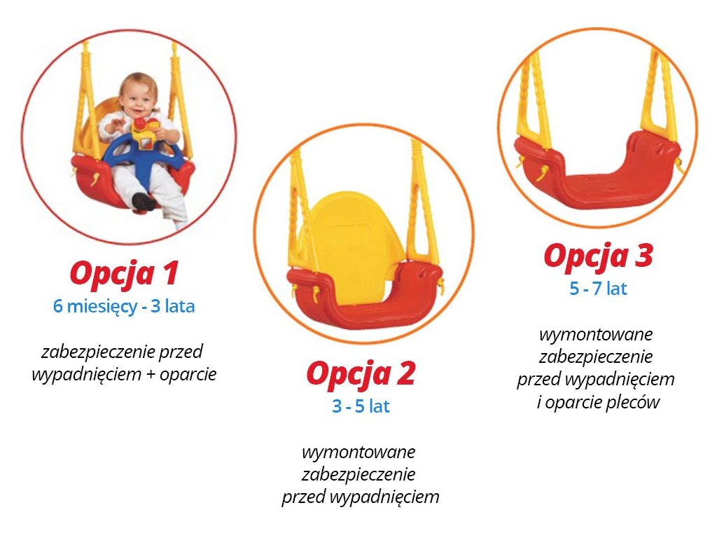 - pevná lana délka až 130 cm, nastavitelná pomocí kovových svorek, lana jsou navíc chráněna speciálními plasty, které chrání dětské ruce před možným odřením a zvyšují stabilitu při houpání
