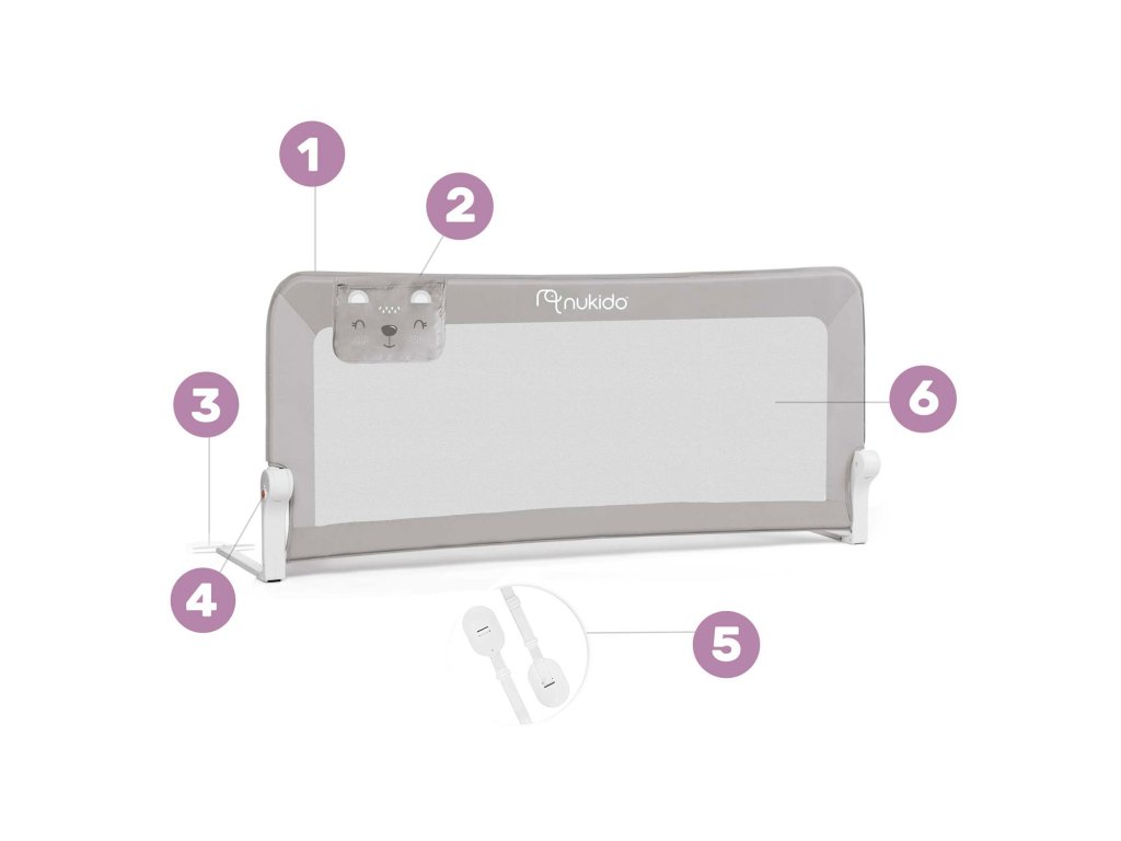 Bezpečnostní zábrana k posteli 150 x 66 x 35 cm Nukido šedá