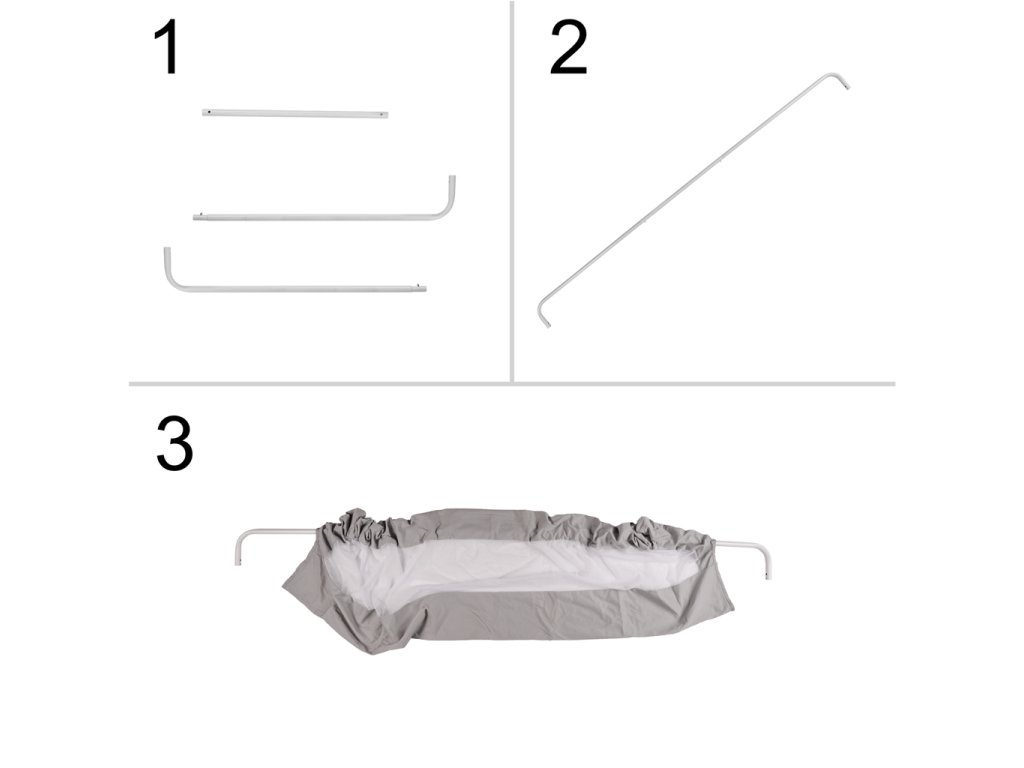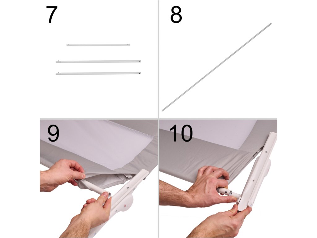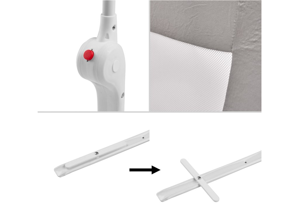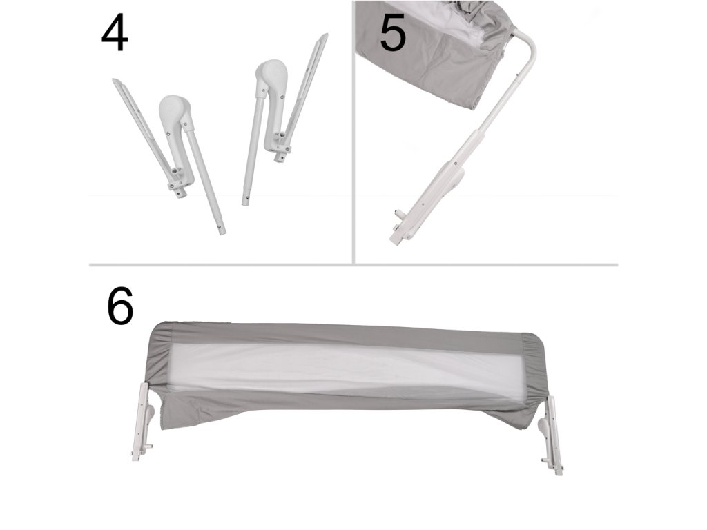 Praktické zábradlí chrání před náhodným pádem a zajišťuje pohodlí a bezpečnost pro všichni členové domácnosti. Instalace je velmi jednoduchá - stačí složit rám, zasunout jej do látkového síťovaného potahu a poté umístit stojany pod matraci.