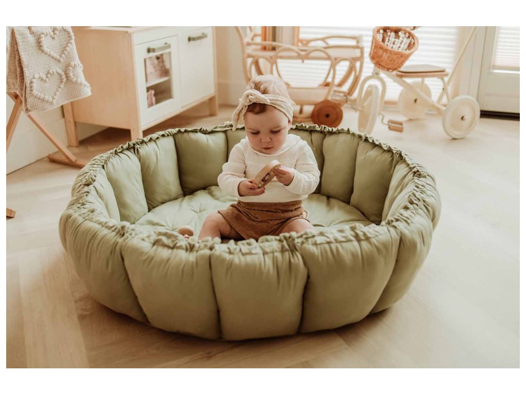 Play&Go Bloom - hrací podložka 3v1, která roste s vaším dítětem. Bezpečné hnízdo pro miminko s měkkými boky, později větší hrací plocha nebo úložný prostor na hračky. Lehká, přenosná a vyrobená z ekologického materiálu. Průměr 130 cm. Hustý prostor kdekoli!