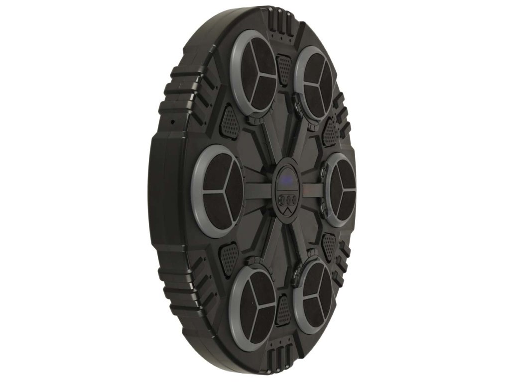 - Věk : 8+- Barva : černá, šedá- Plastové : ABS- Úhlopříčka vytáčení : 35,5 cm- Tloušťka : 4,5 cm- Zásahové body: Měkká houba - Bodování : 6 body : - USB kabel : 140 cm- Světelné efekty: ano- Hudba : ano, 3 úrovně ovládání hlasitosti Bluetooth : ano - přehrávání z telefonu- Napájení : baterie 3,7 V 500 mAh- Hmotnost pohon : 0,95 kg- Hmotnost s lepenkou : 1,16 kg- Rozměry kartonu : 36 x 36 x 7 cm