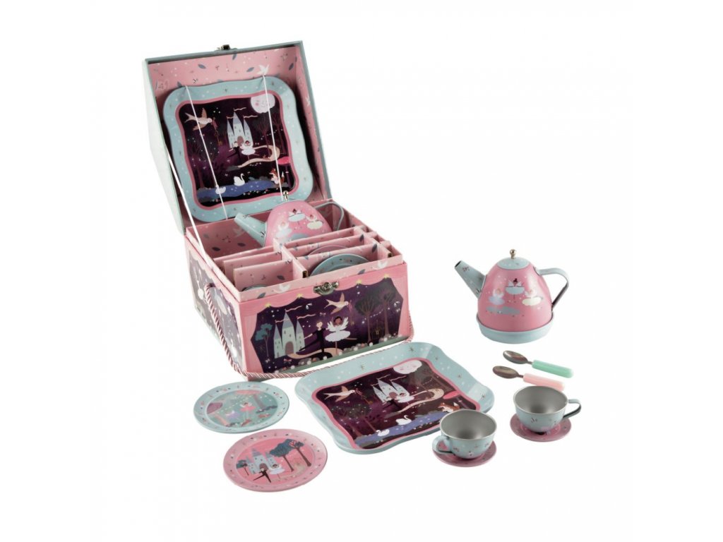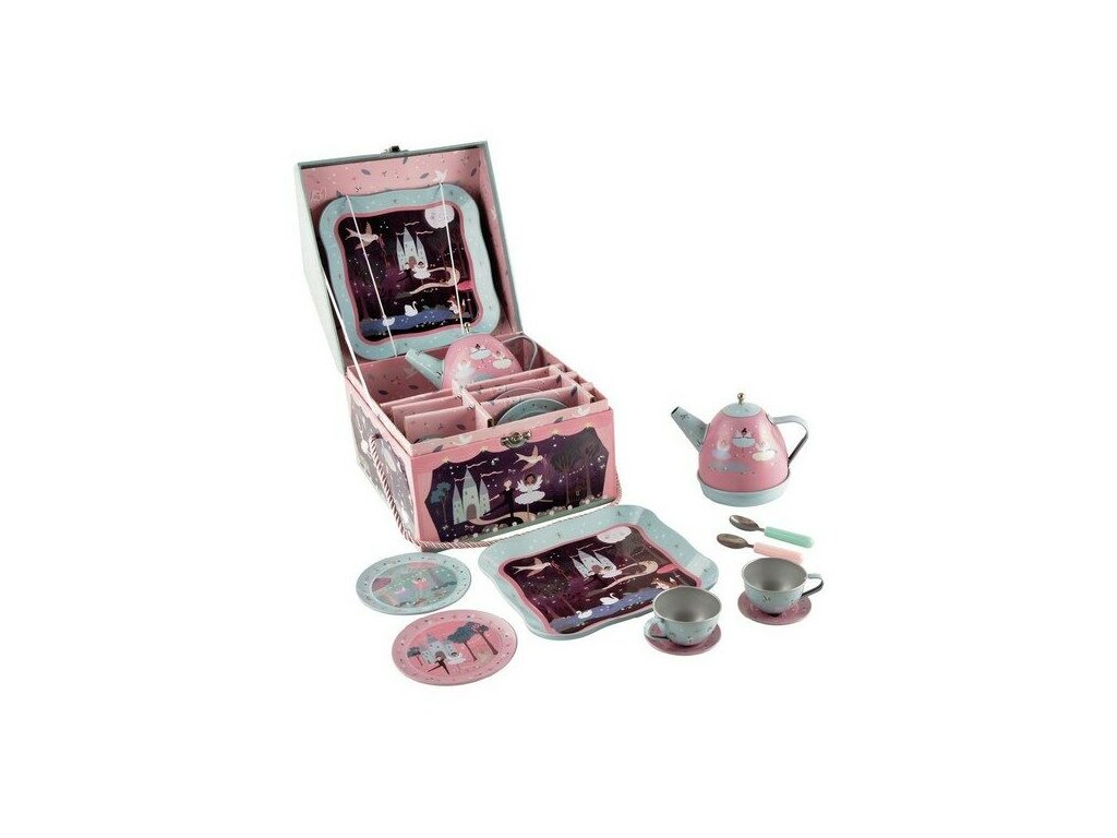Užijte si večírek s touto krásnou čajovou soupravou. Obsahuje 10ks: 2 šálky, 2 podšálky, 2 lžičky, 2 podšálky, zpívající konvičku, podnos