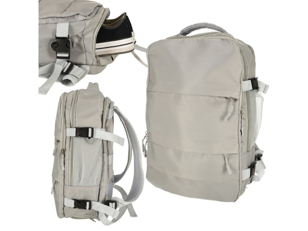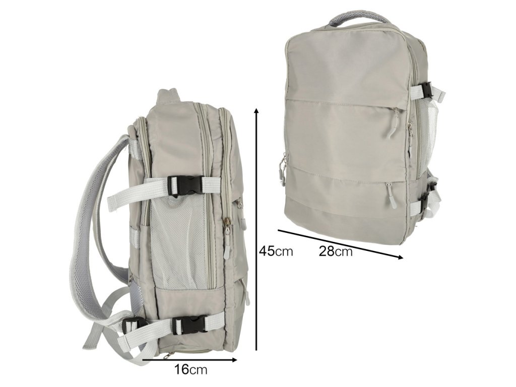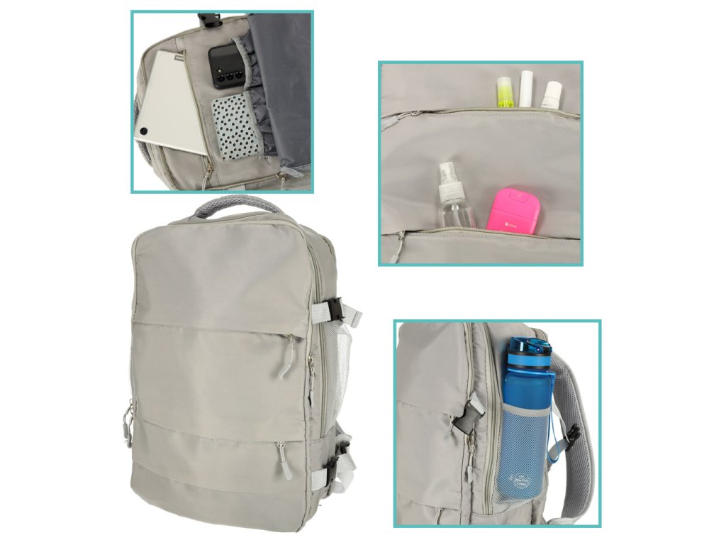 Cestovní batoh do letadla vodotěsný USB kabel 45x16x28cm šedý