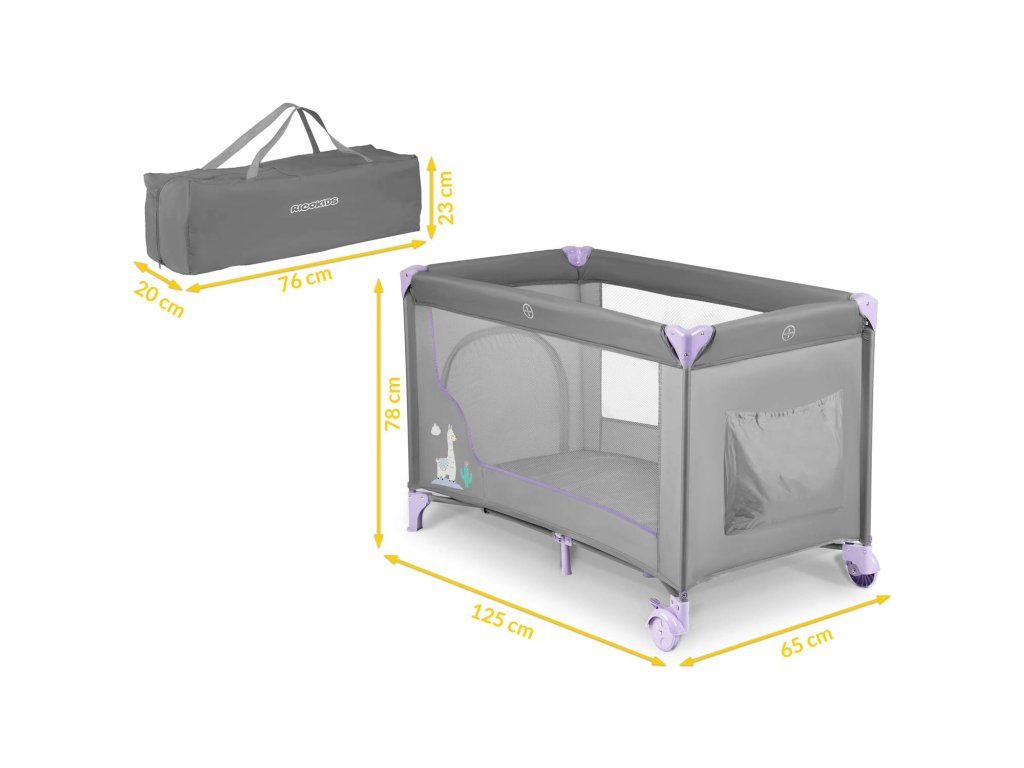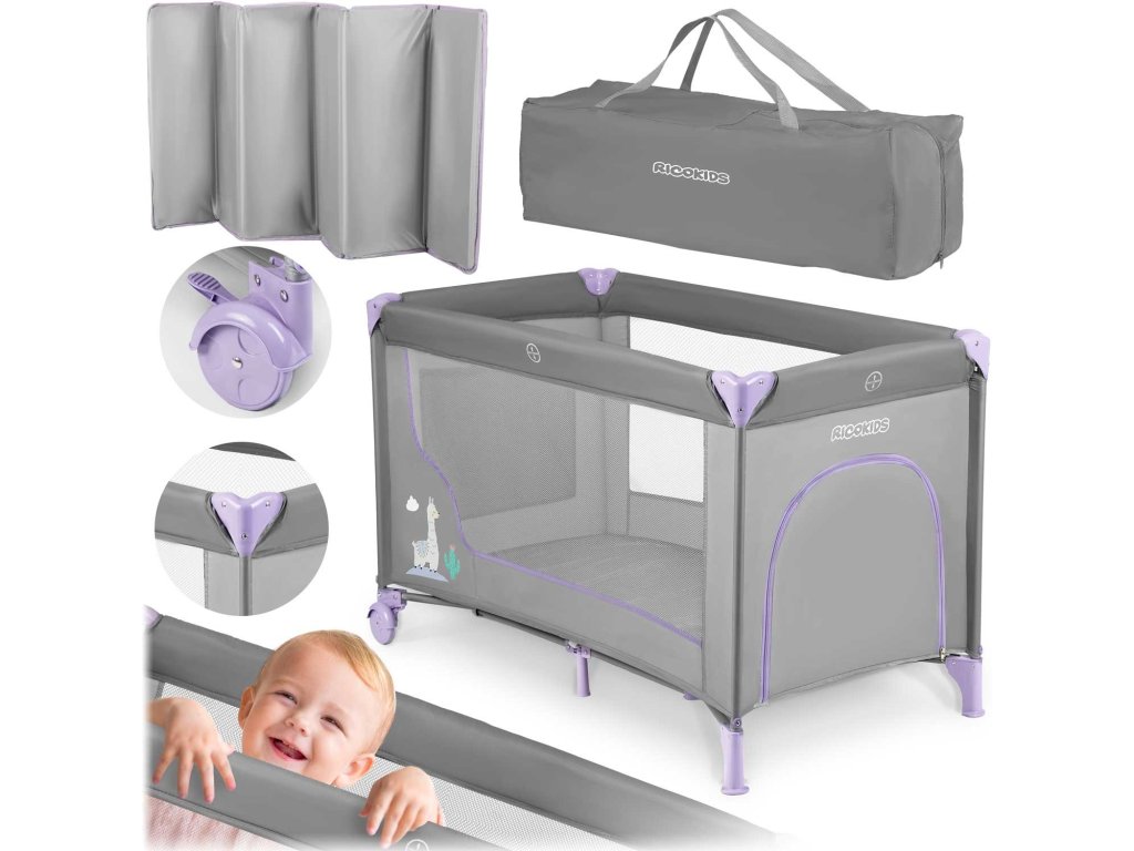 Cestovní postýlka 125 x 65 x 78 cm RK-240 šedá levandule