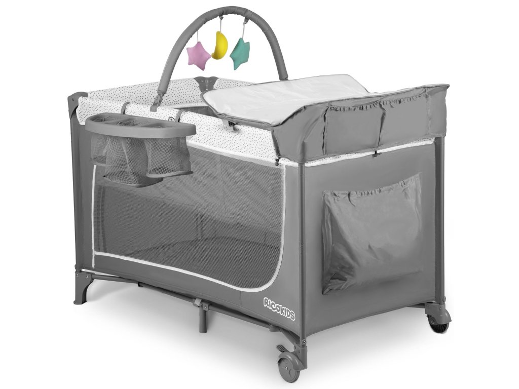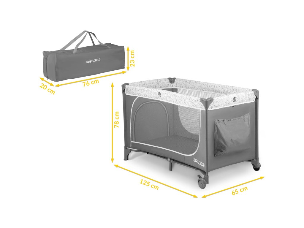 Cestovní postýlka + matrace + taška 125x65x78cm RK-241 šedá