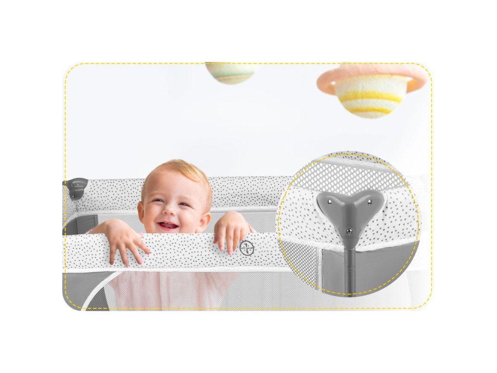 Cestovní postýlka se vám bude hodit na cestách,ale také při každodenním používání. Je nepostradatelný při stěhování, spaní, návštěvě hostů s dětmi nebo jako ohrádka.