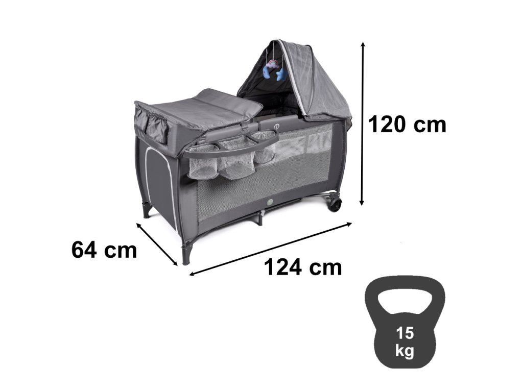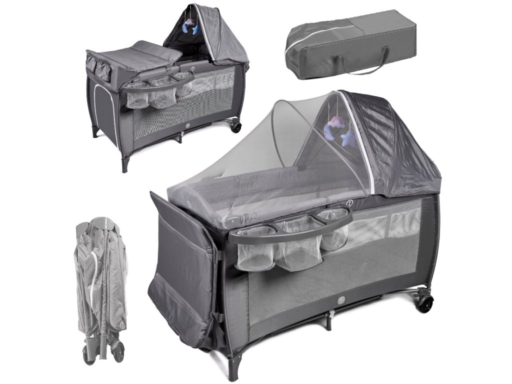 Cestovní skládací postýlka s dvouúrovňovým přebalovacím pultem max. 15 kg
