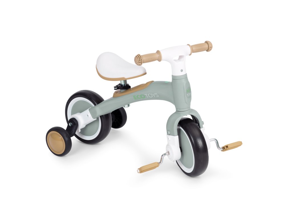 Cyklistické kolo s pedály - tréninkové kolo s postranními kolečky 3v1 zelené ECOTOYS