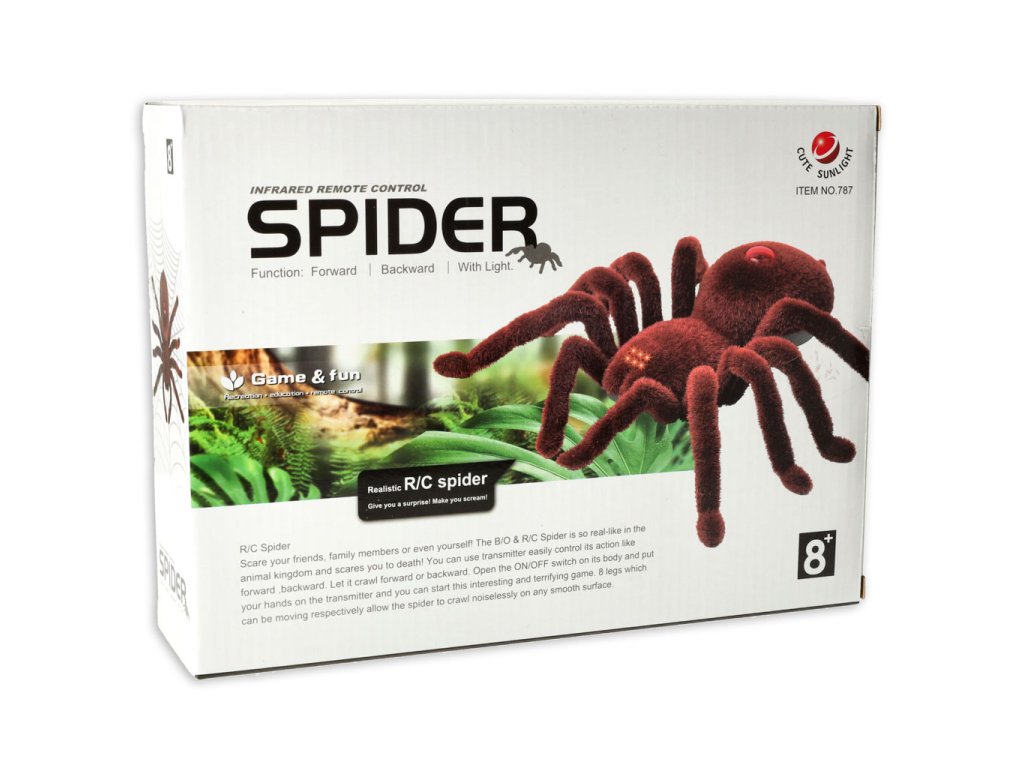 Velký chlupatý pavouk ovládaný na dálku pomocí dálkového ovládání.