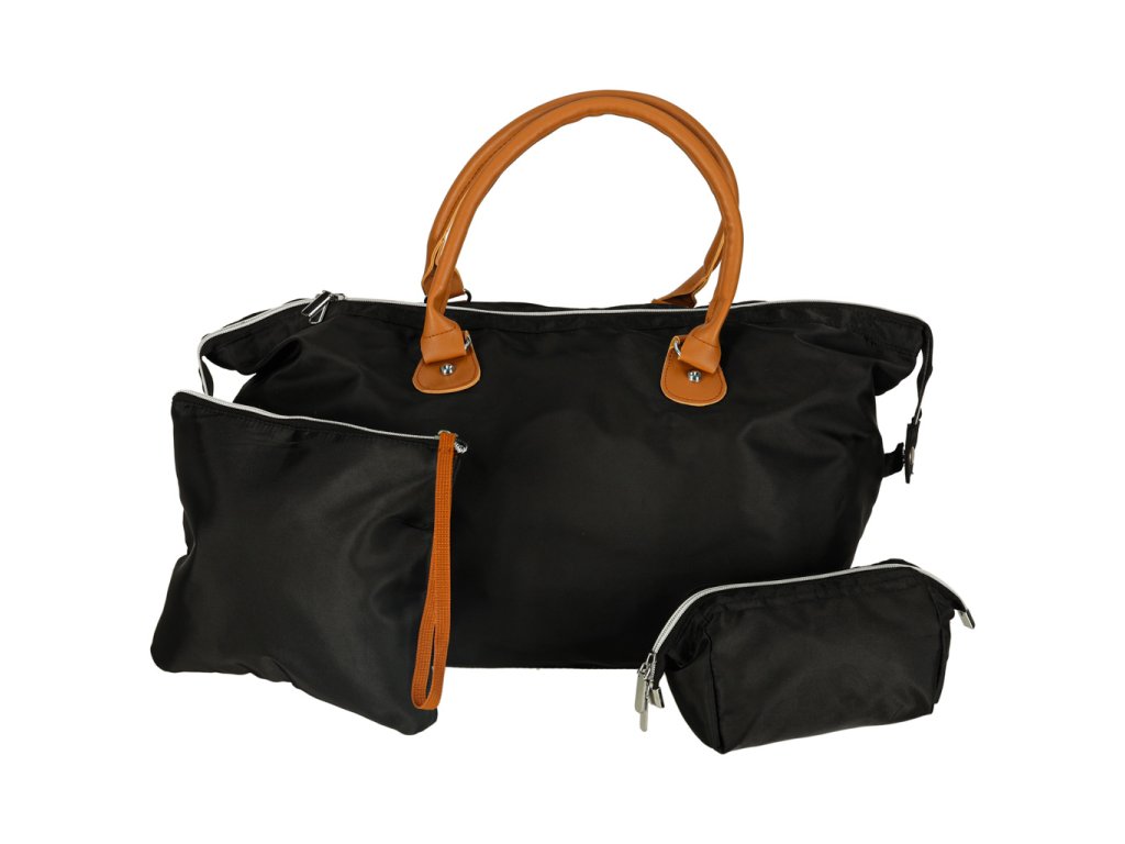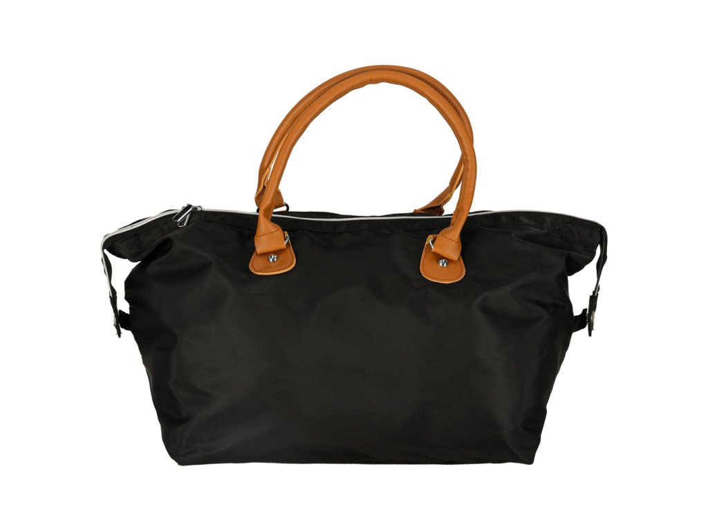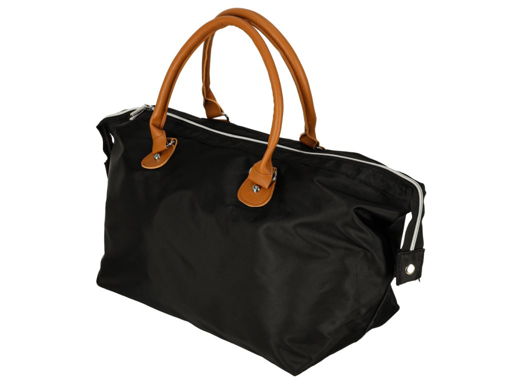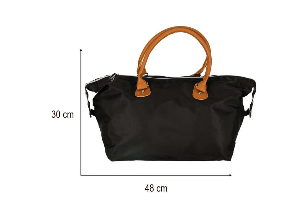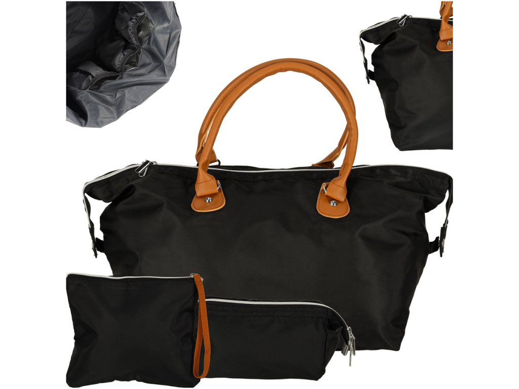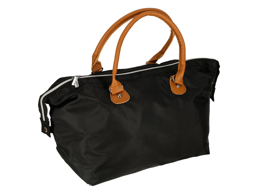 Elegantní černá polyesterová taška s praktickým zipem. Obsahuje velkou kapsu a dvě malé kapsy. Ideální na cesty a do města. Rozměry: 48x30x21 cm.