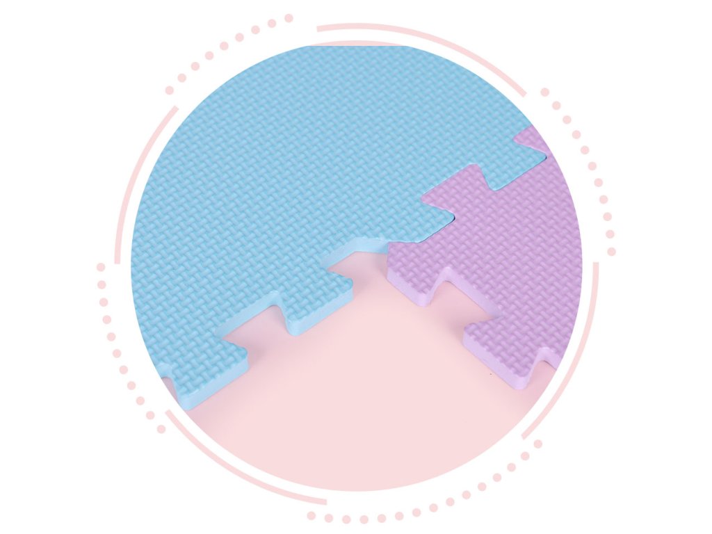 - Podložka se skládá ze 4 čtverců a 18 dalších dílků, jejichž okraje mají speciální "zoubky", takže je lze libovolně kombinovat. Tloušťka podložky ( 1 cm ) poskytuje dostatečnou ochranu proti pádu a je příjemně měkká.