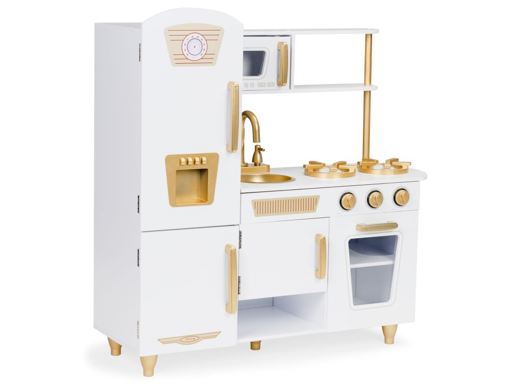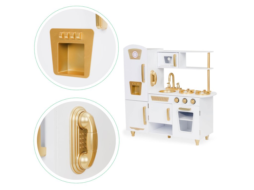 Dětská dřevěná kuchyňka velká bílo-zlatá ECOTOYS
