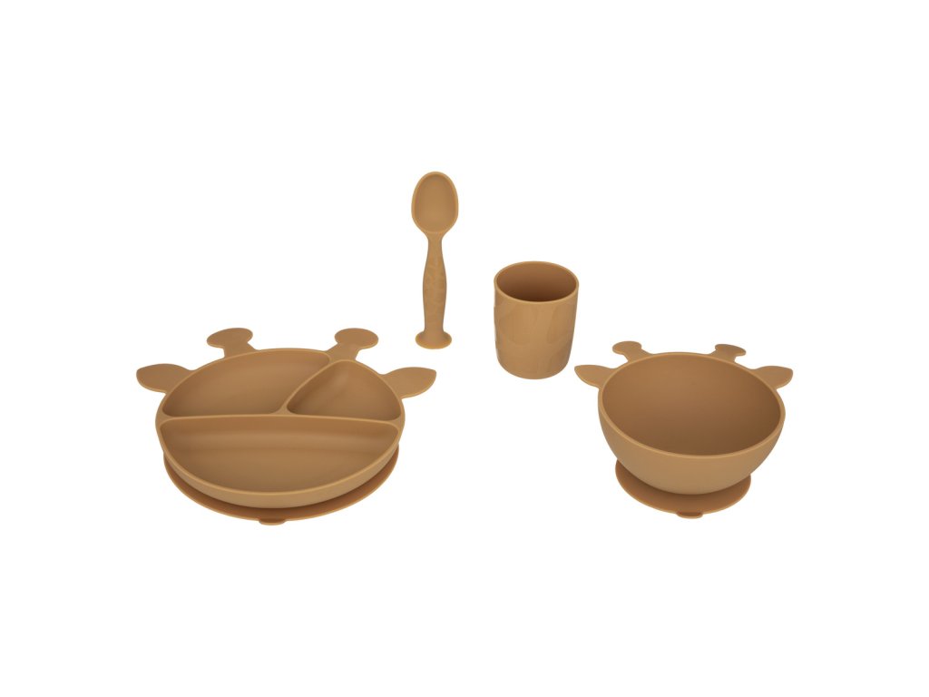 Dětská jídelní souprava "Žirafa", silikon, okrově žlutá