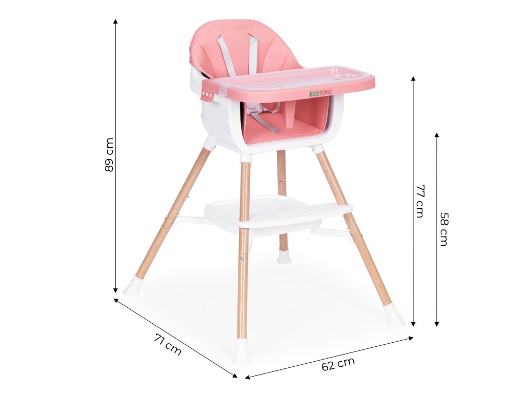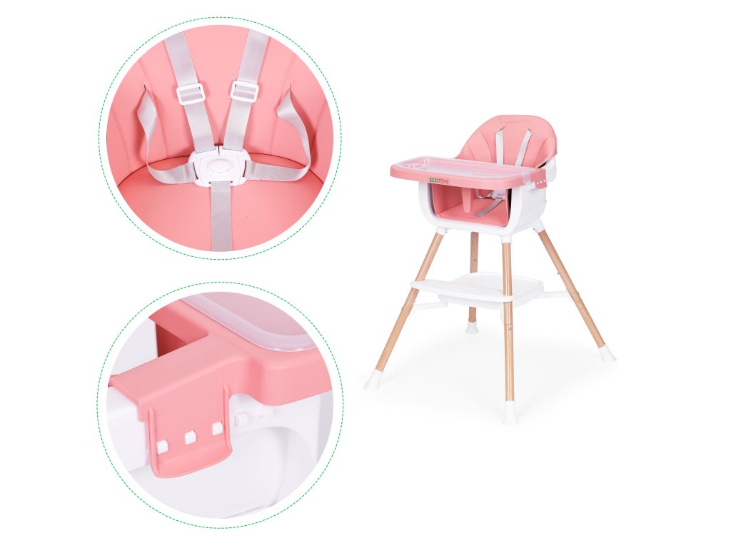 Dětská jídelní židlička 2v1 růžová ECOTOYS