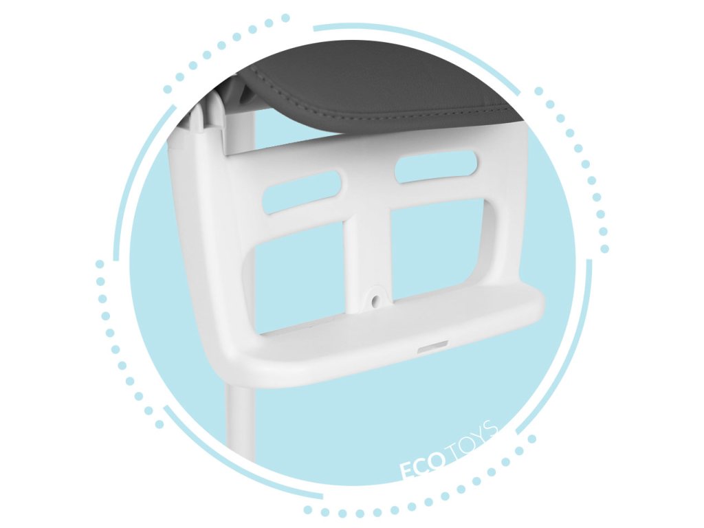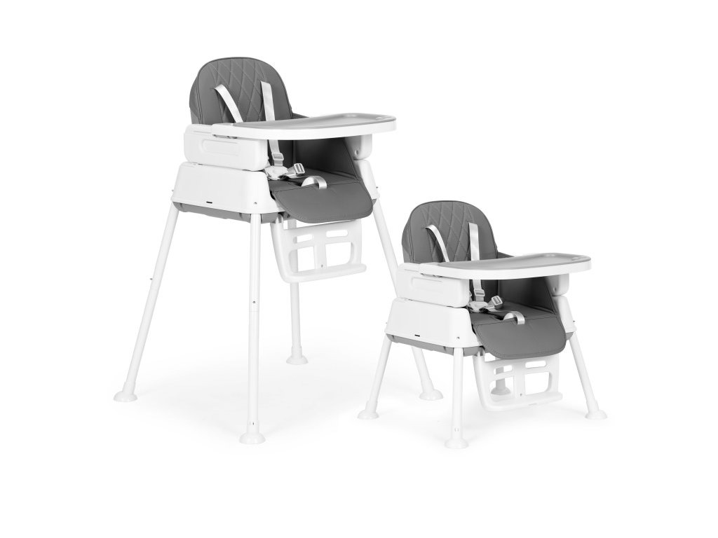Stolička má možnosť meniť svoju výšku. Nohy a podnožku môžete ľahko odňať, takže vysoká stolička sa zmení na nižšiu stoličku. Jedinečnou vlastnosťou stoličky je, že sa dá polohovať a pripojené k štandardnej stoličke.
