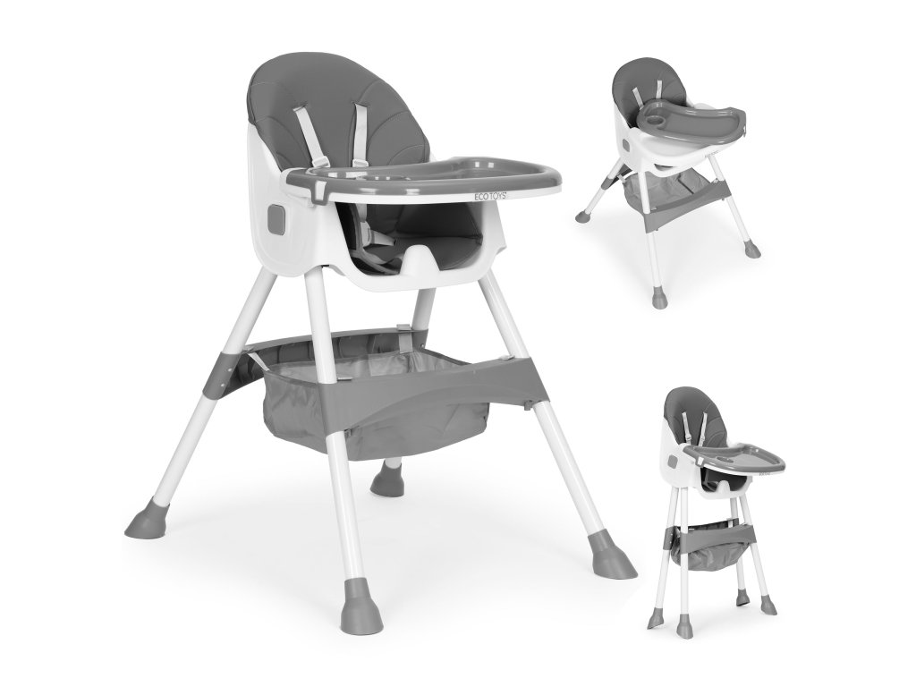 Dětská jídelní židlička ECOTOYS - skládací, šedá